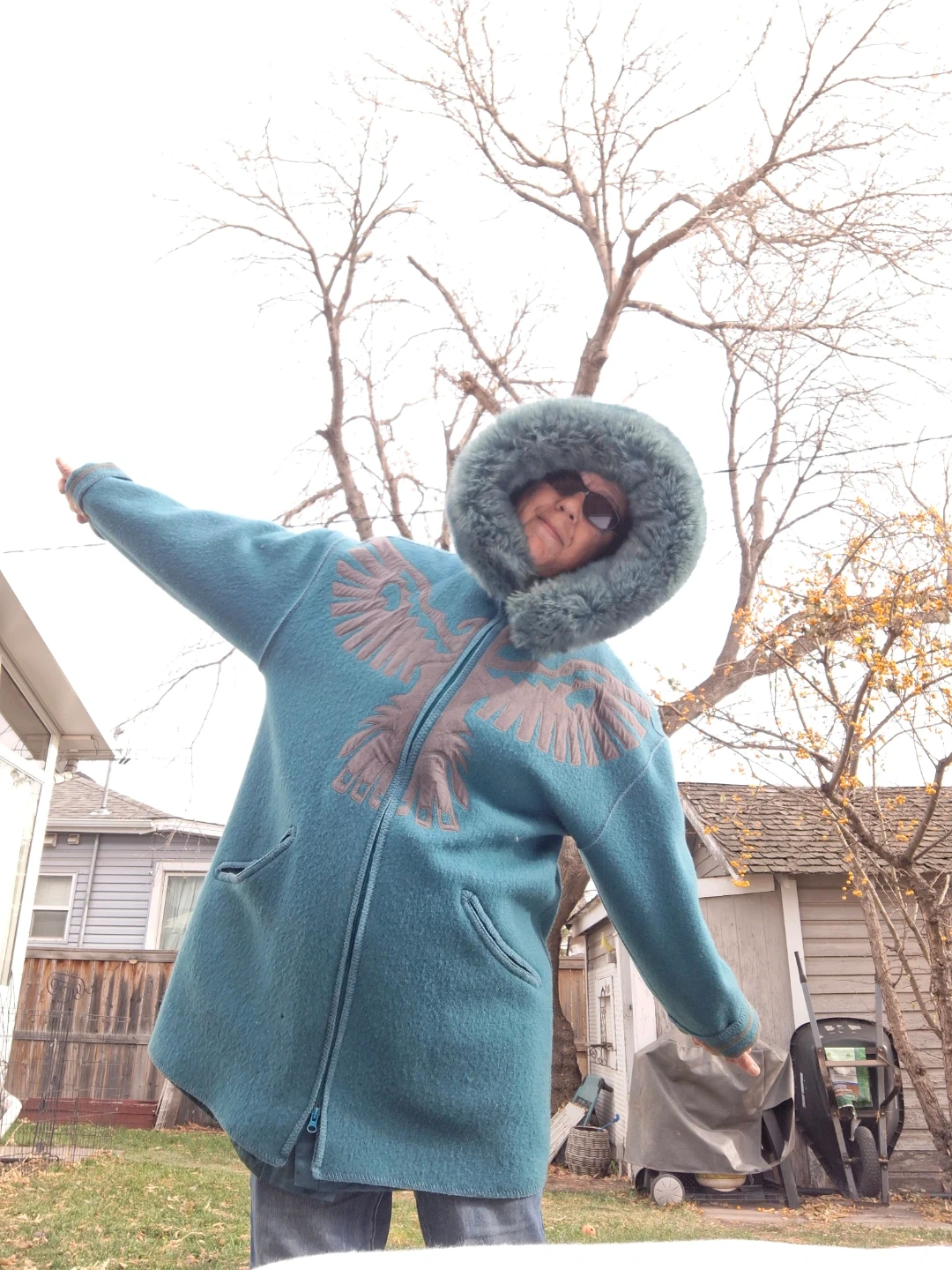 Thunderbird Teal Wool Coat with Hood & separate liner