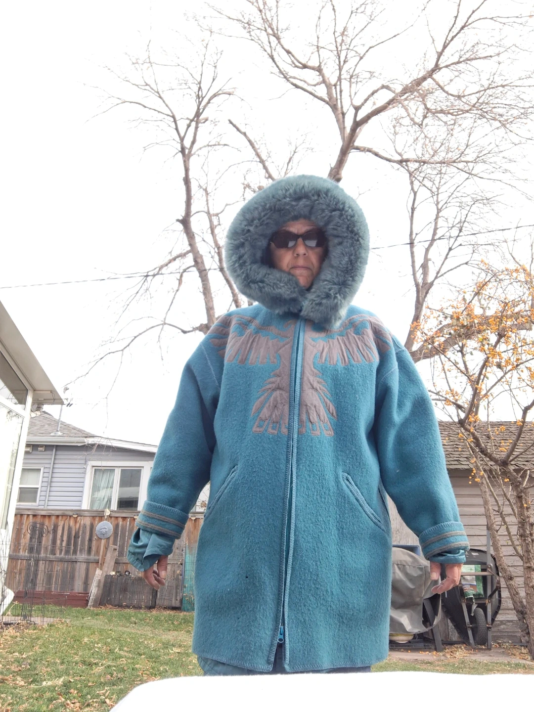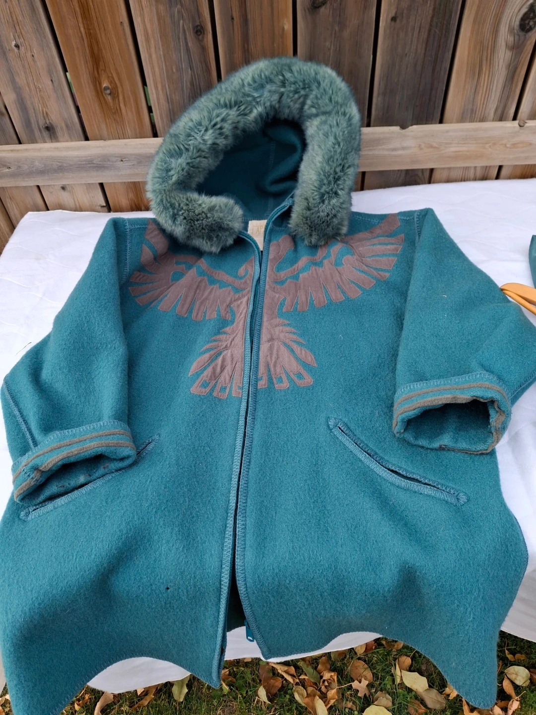 Thunderbird Teal Wool Coat with Hood & separate liner