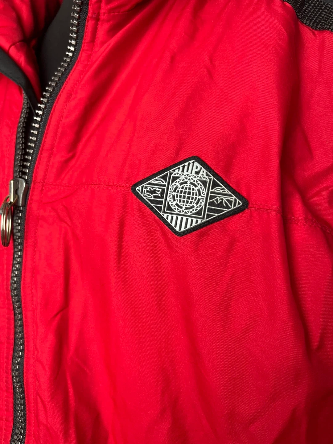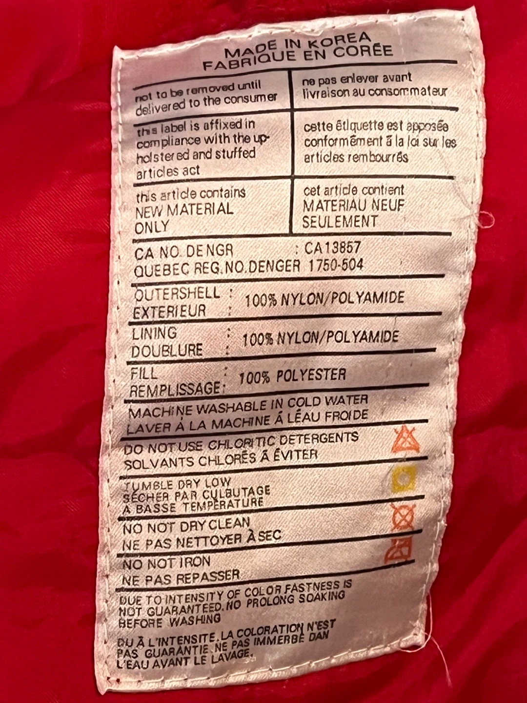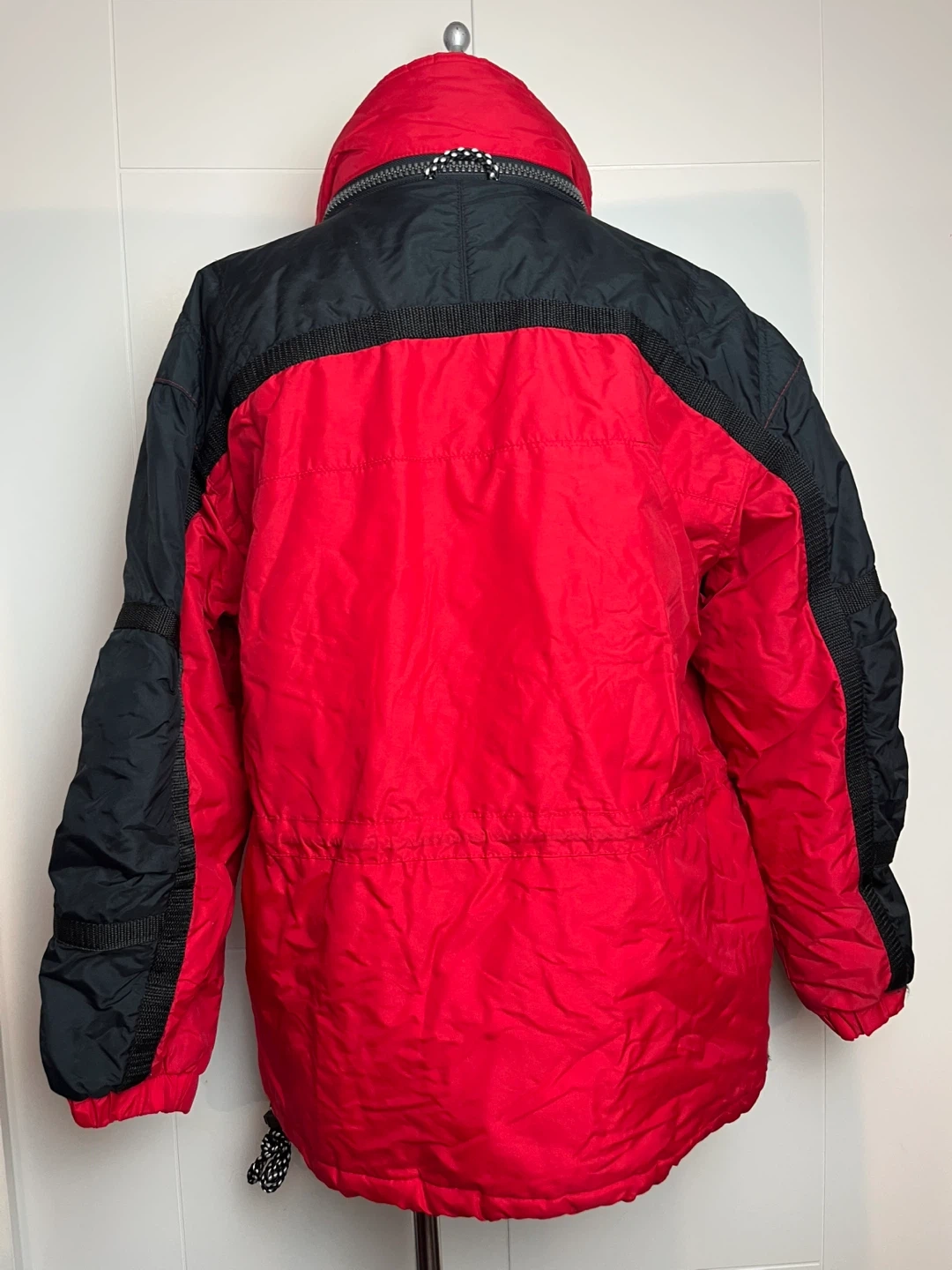 Selling a Jupa Sports jacket in red and black! This jacket is made in Korea and is machine washable in cold water. The outer shell and lining are 100% nylon/polyamide, and the fill is 100% polyester.