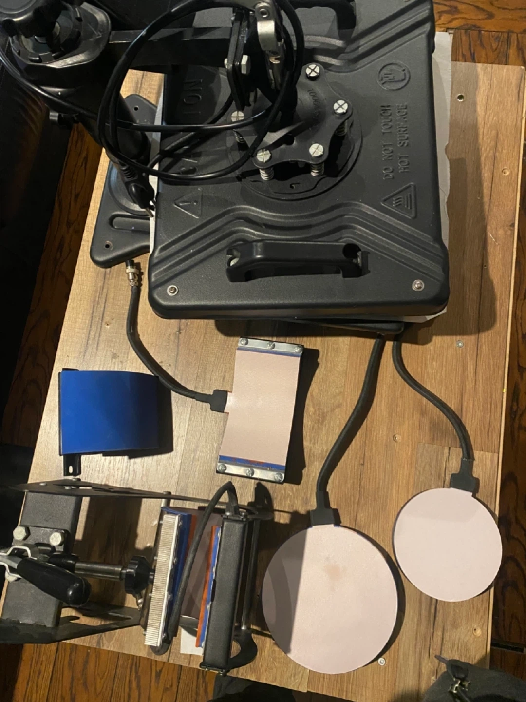 Selling a heat press machine, perfect for various crafting projects! It appears to be in good working condition and includes multiple attachments for different items like mugs and hats. Great for starting a small business or for personal use
