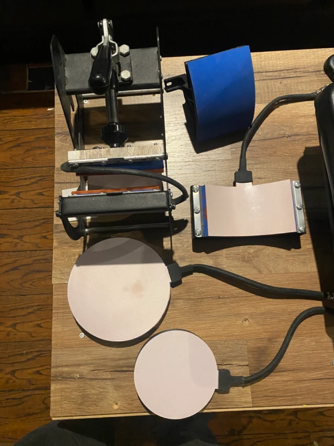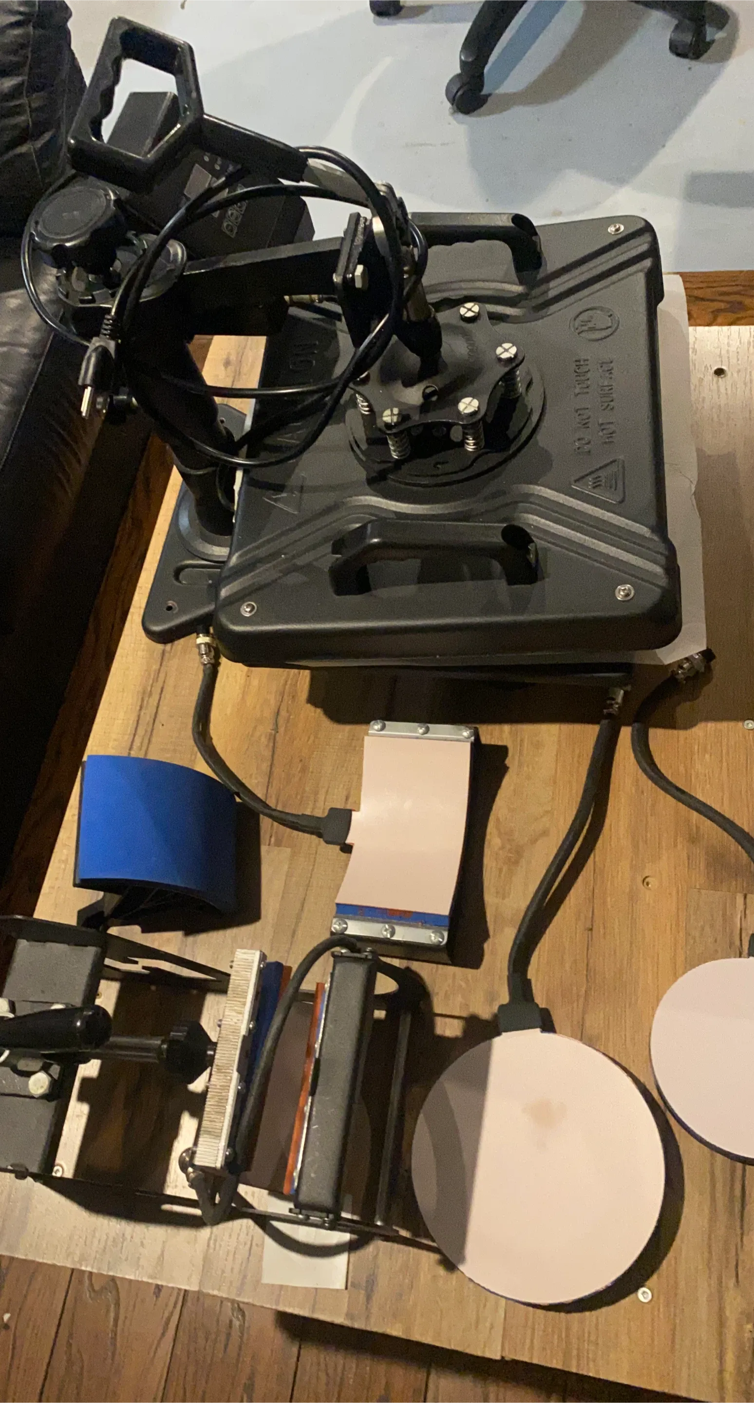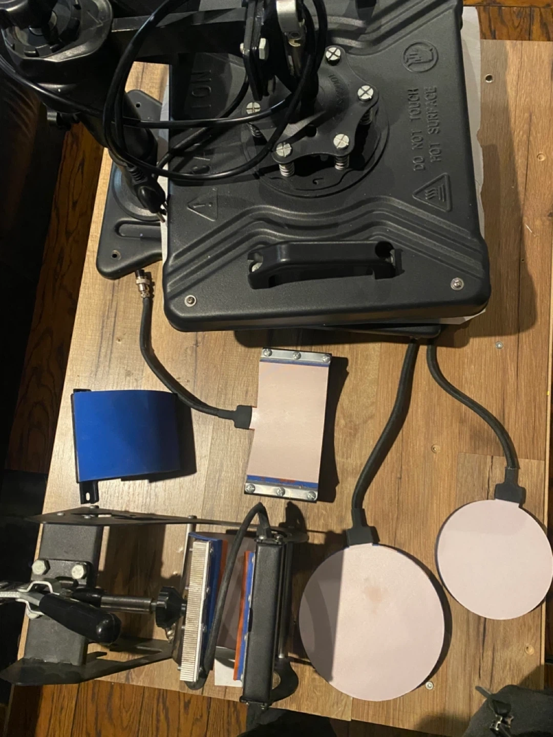 Selling a heat press machine, perfect for various crafting projects! It appears to be in good working condition and includes multiple attachments for different items like mugs and hats. Great for starting a small business or for personal use