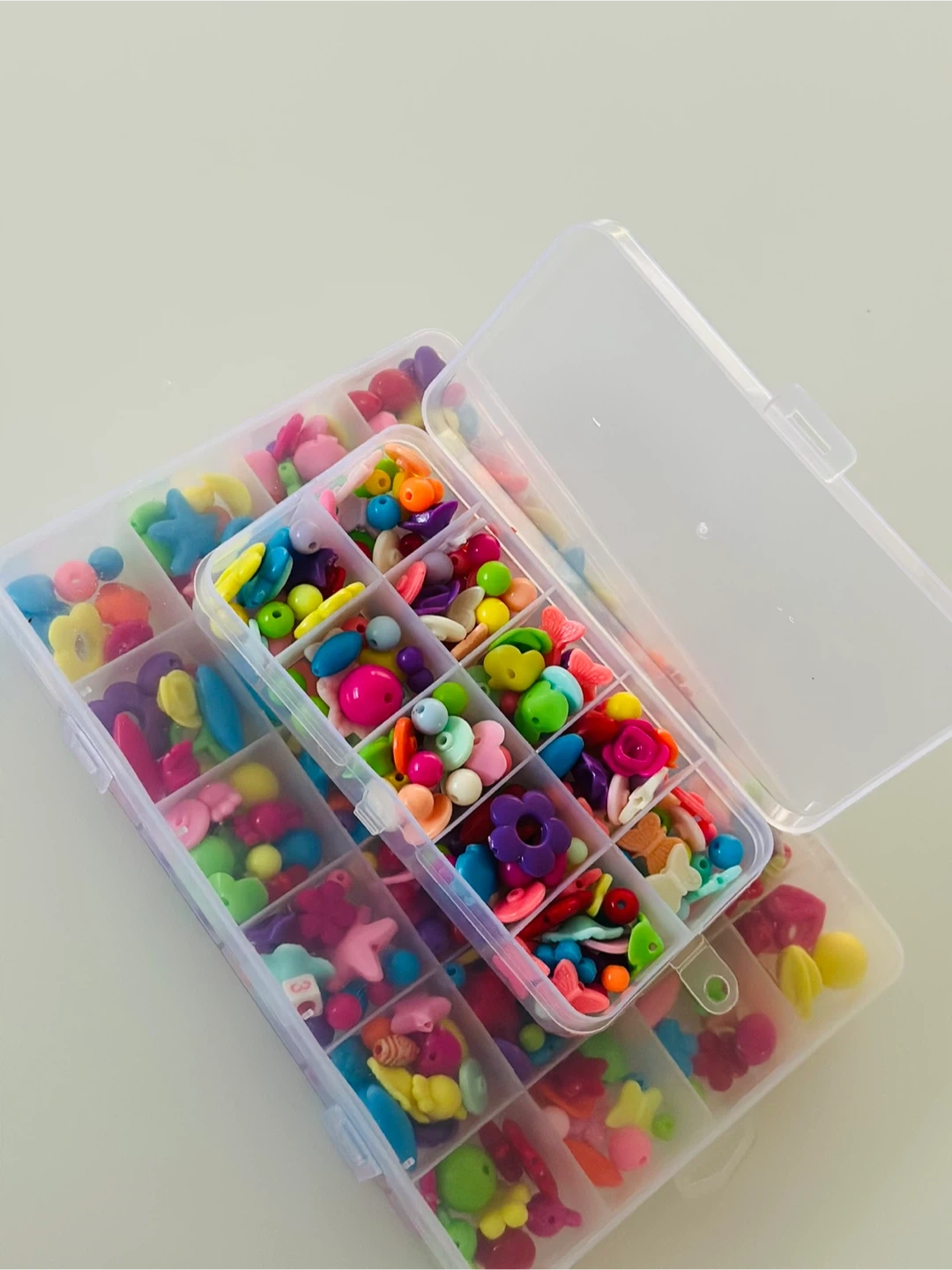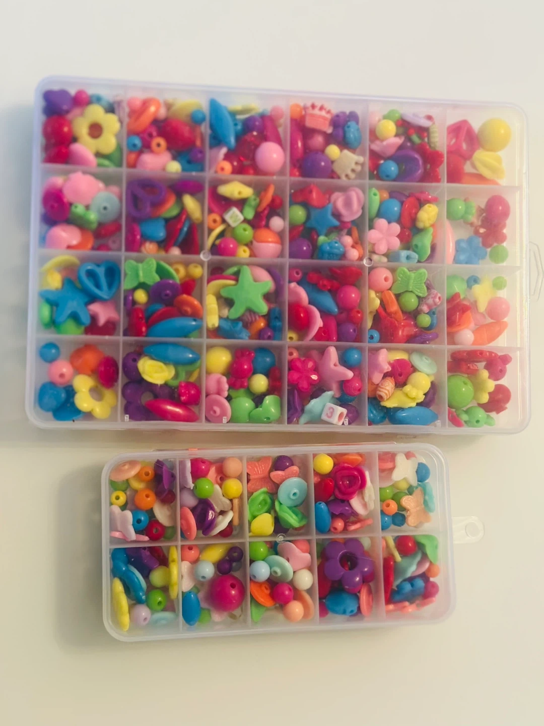 I'm selling these cute beads in a storage container! They're great for crafts and jewelry making. There are a variety of shapes and colours to choose from