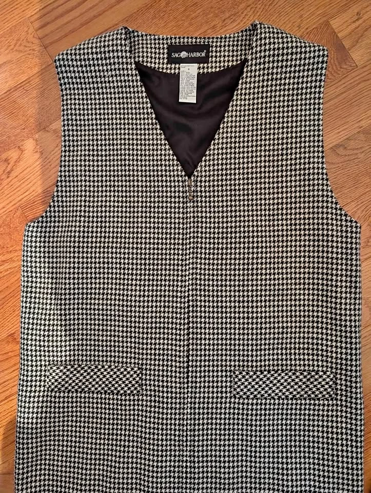 Show allWomen's Vintage Sag Harbor Hounds Tooth Front Zip Lined Jumper/D