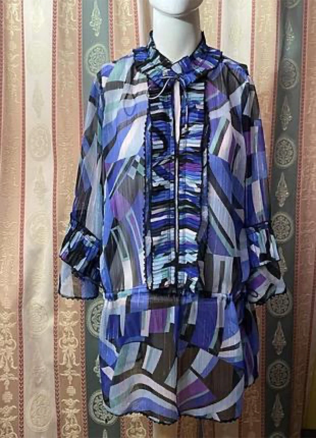 Marc Cain Abstract Print Sheer Ruffled Blouse/Dress size 12