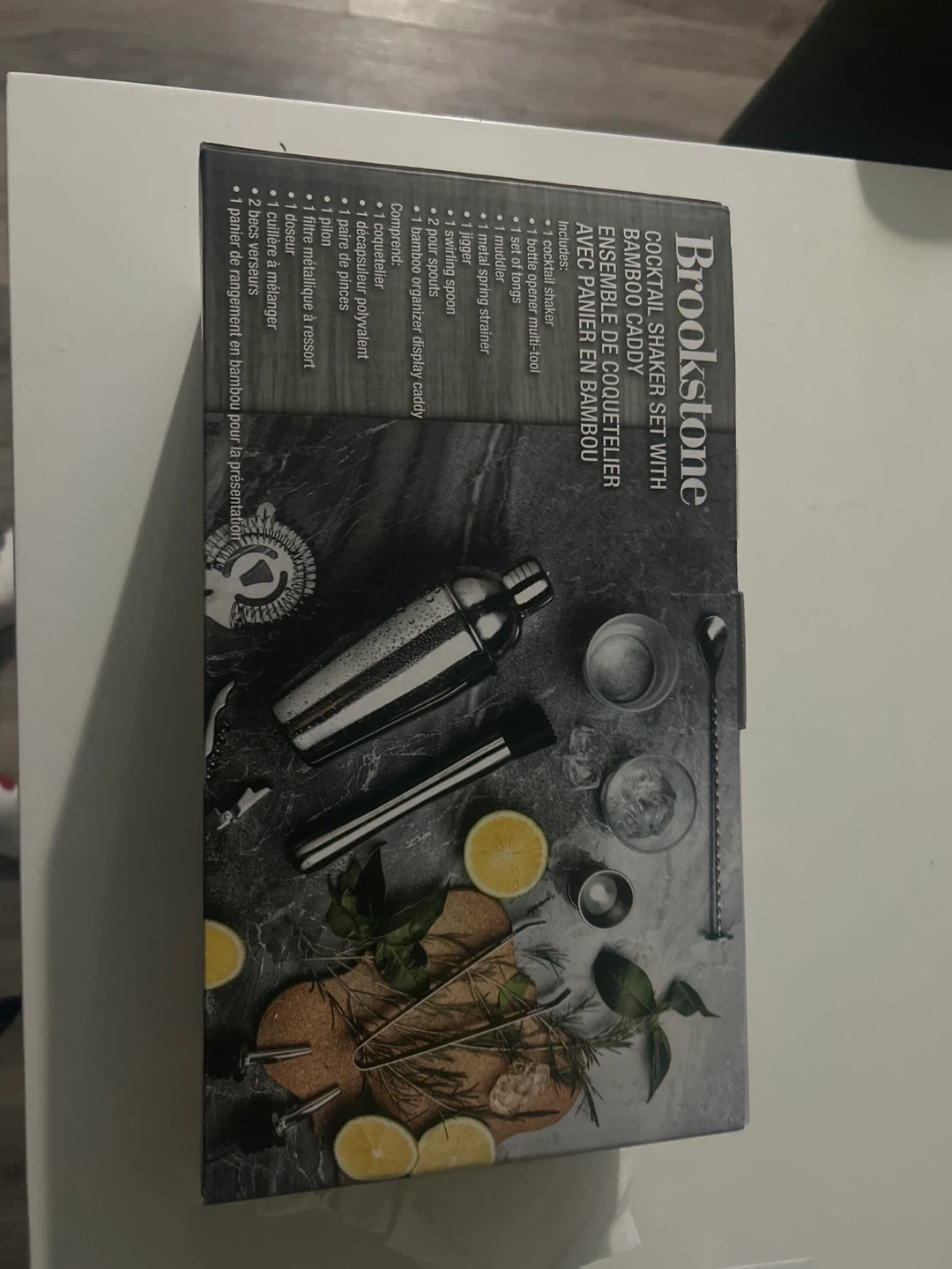 Selling a brand new Brookstone Cocktail Shaker Set with Bamboo Caddy! It includes: