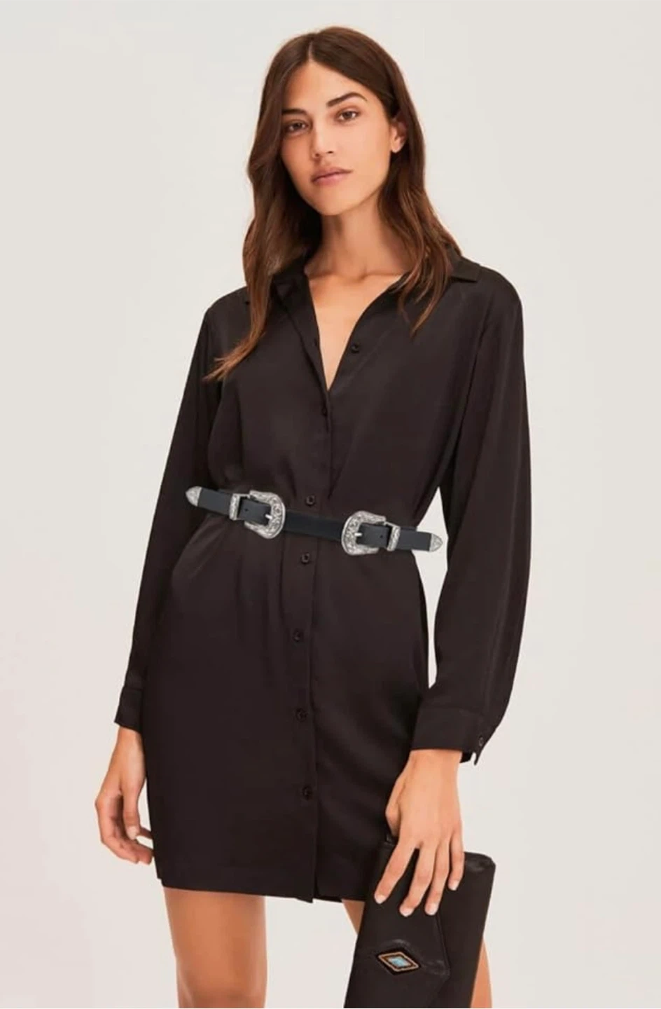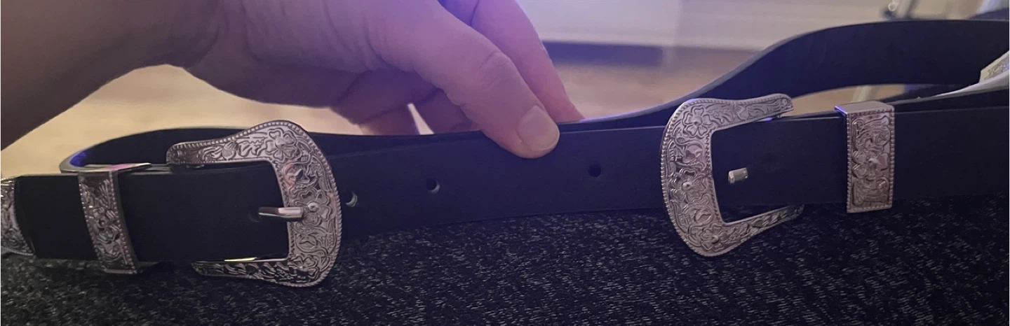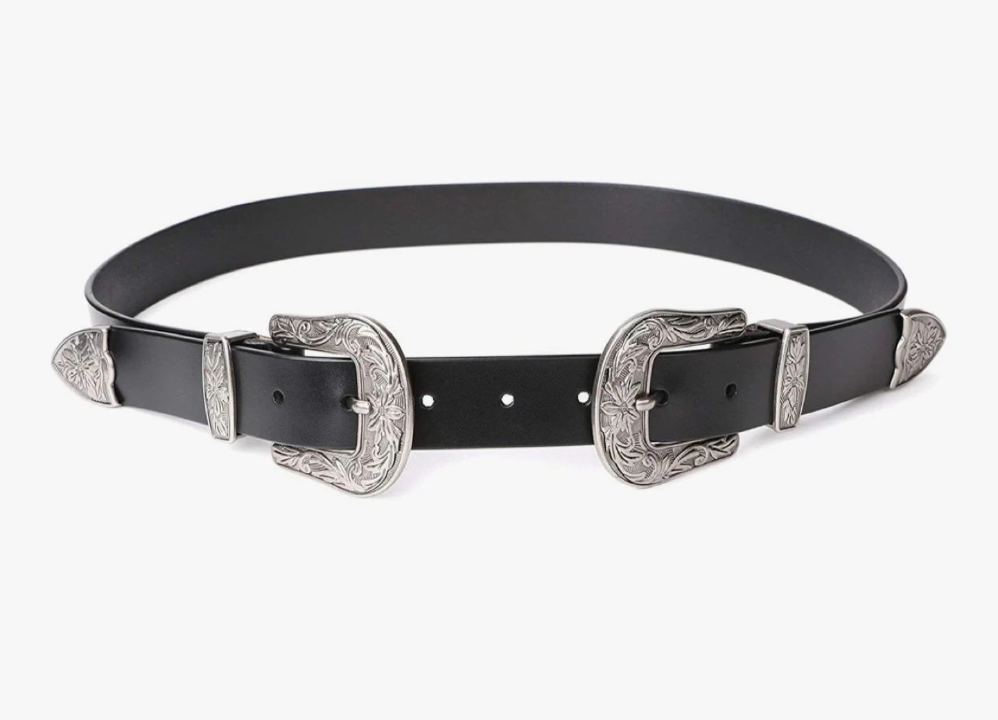 Pieces Black Double Buckle Belt with Silver Accents
