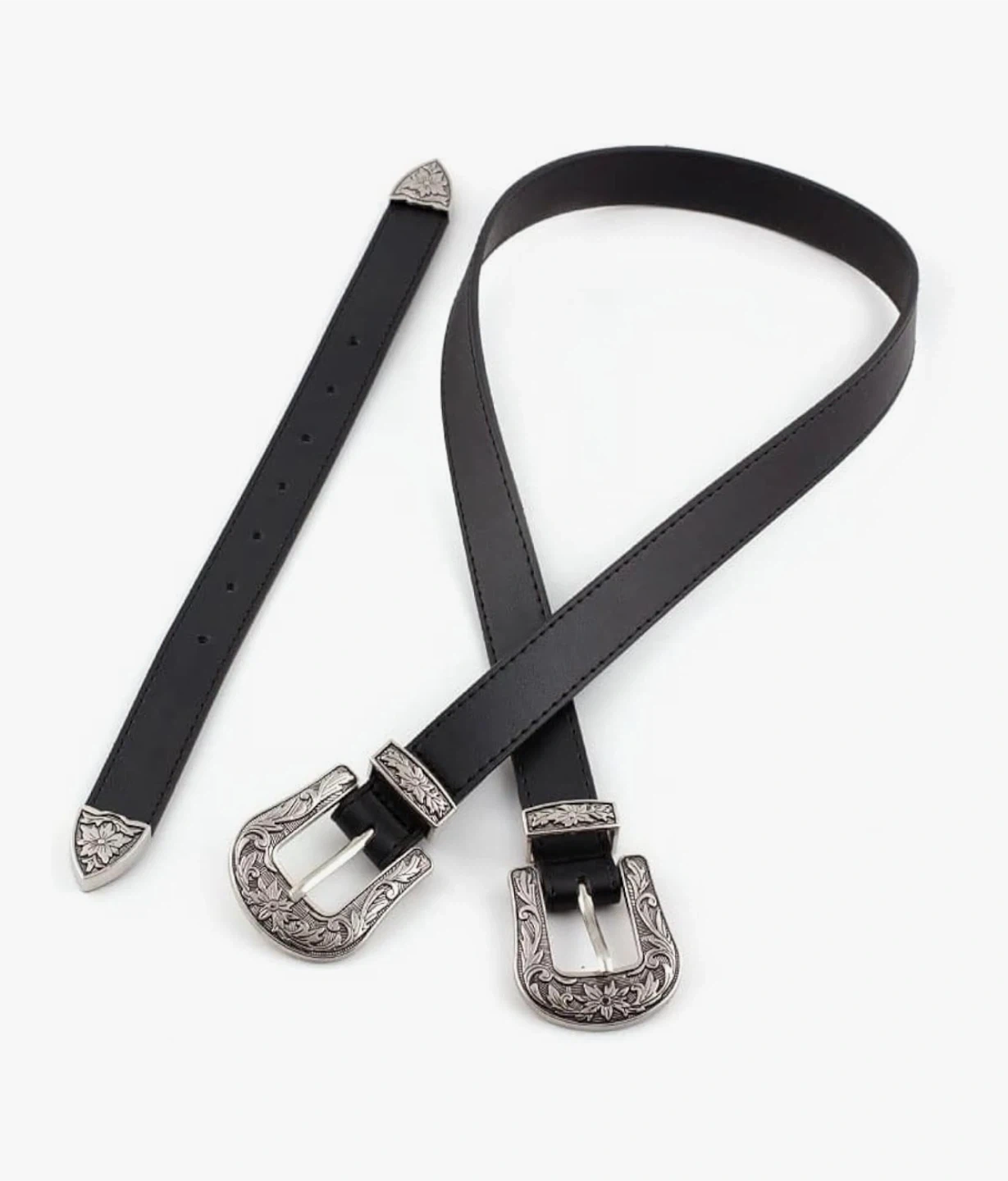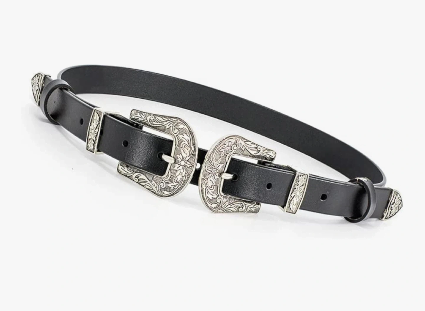 Buy & SellPieces Black Double Buckle Belt with Silver AccentsPieces Black Double Buckle Belt with Silver AccentsTrade