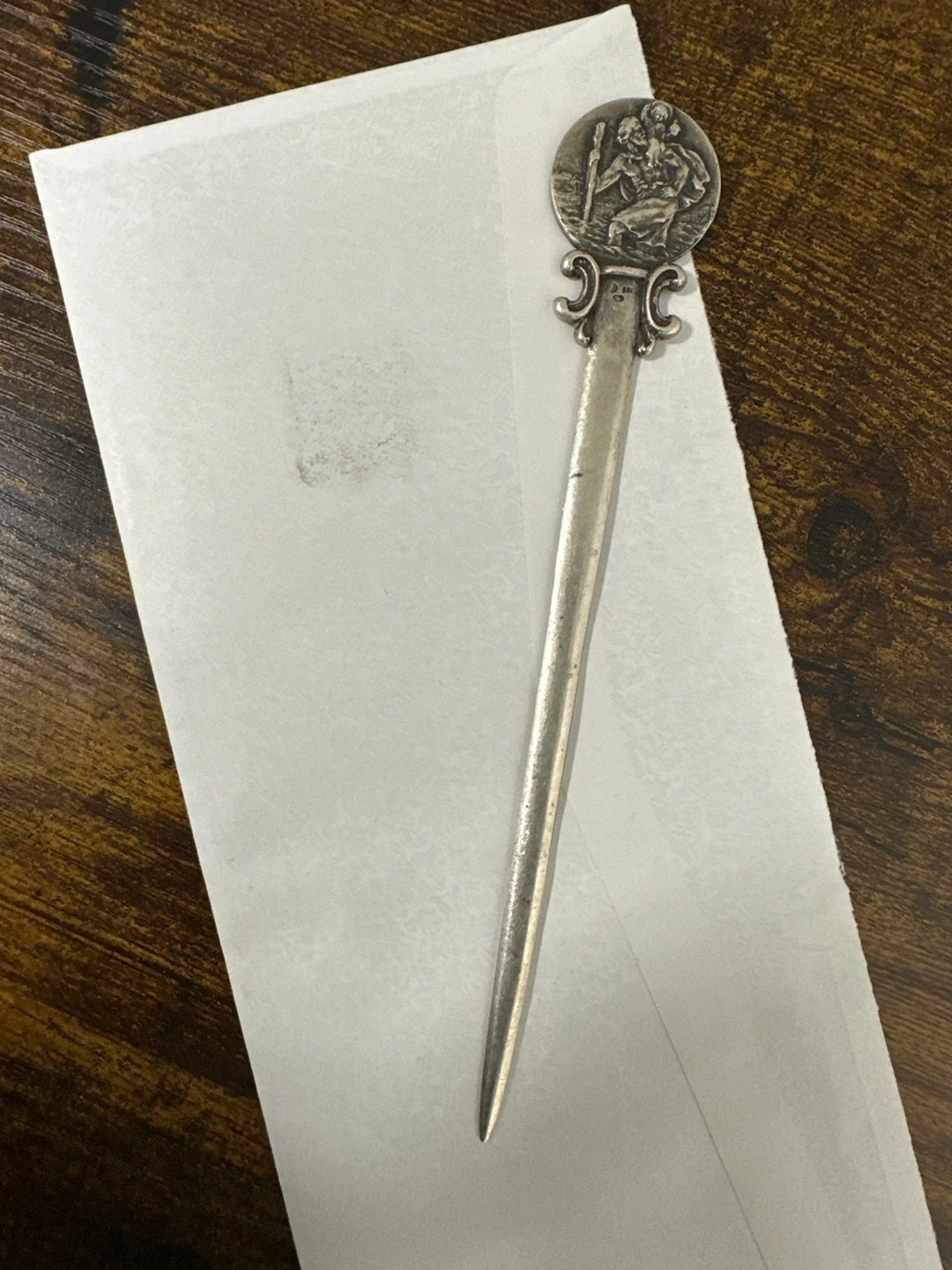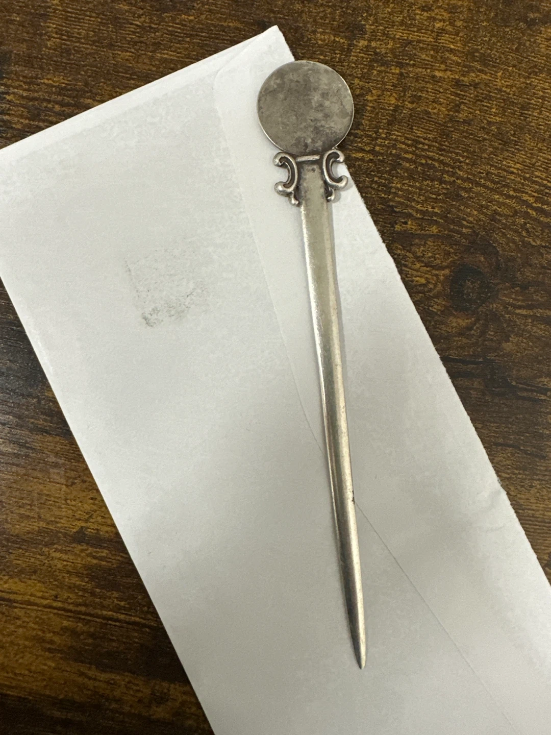 Buy & SellVintage Silver Letter OpenerVintage Silver Letter Opener$24Selling a vintage silver letter opener. It has a unique design on the handle. Perfect for adding a touch of elegance to your desk!ConditionGoodWHERE TO MEETCheck LocationView MapSELLERverifiedAjarSunset Park600 reviews0 chats·2 favorites·69 views