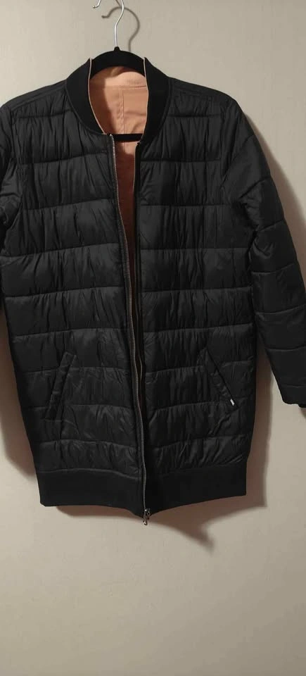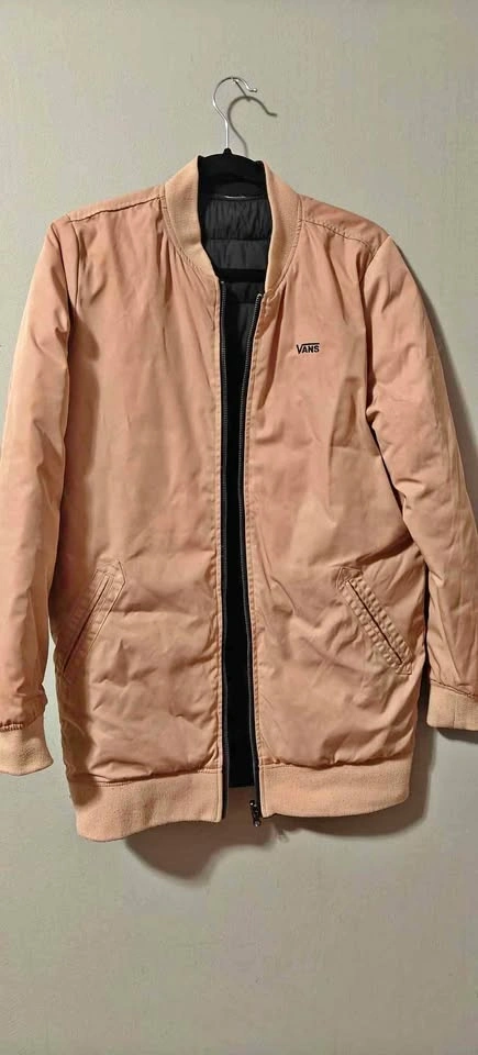 Womens Vans Boom Boom Classic Long Bomber reversible Jacket Black/ light pink, down filled and waterproof. Size M. Used a handful of times, great condition.