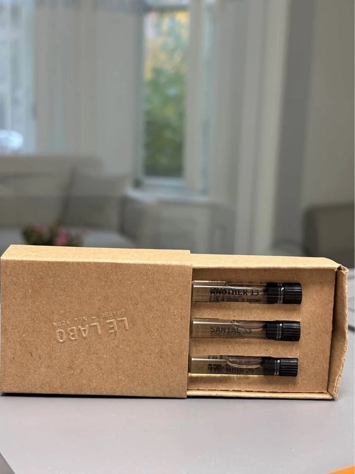 886Authentic LE LABO discovery set including three iconic unisex fragrances: • Another 13 – clean musky skin-like scent • Santal 33 – warm wood + cardamom + creamy sandalwood • Thé Noir 29 – black tea, bergamot, fig, subtle smoke Each vial is 0.75ml. Comes in original embossed slide box packaging. Unused. Stored in dark cabinet. Smoke-free home.