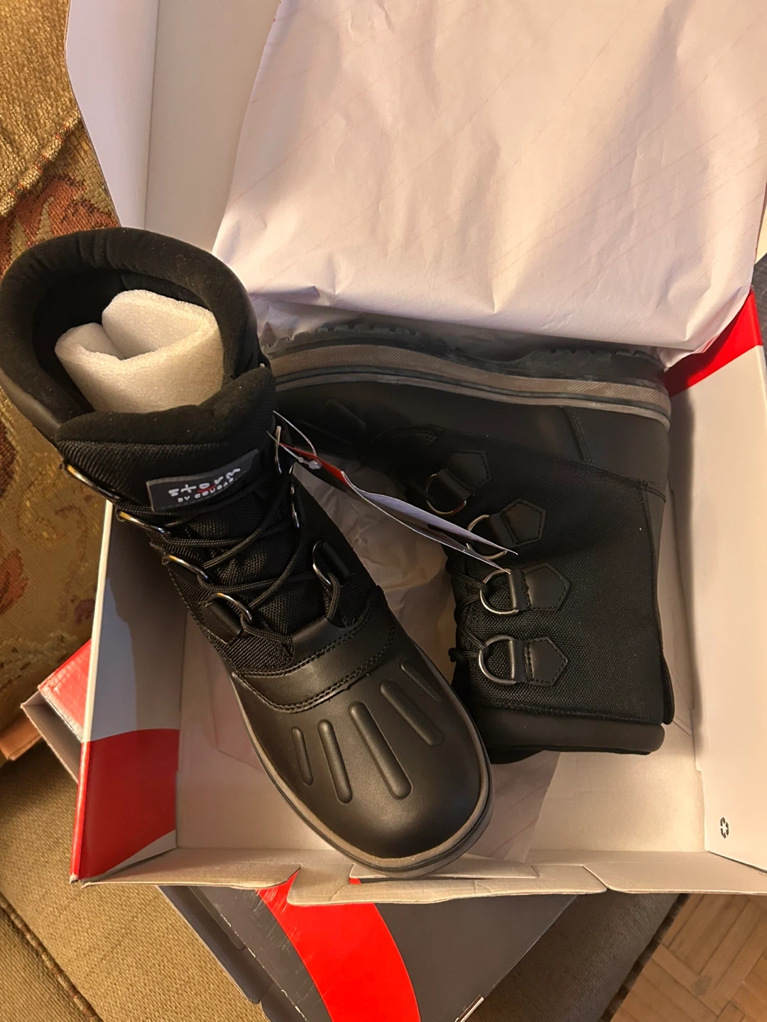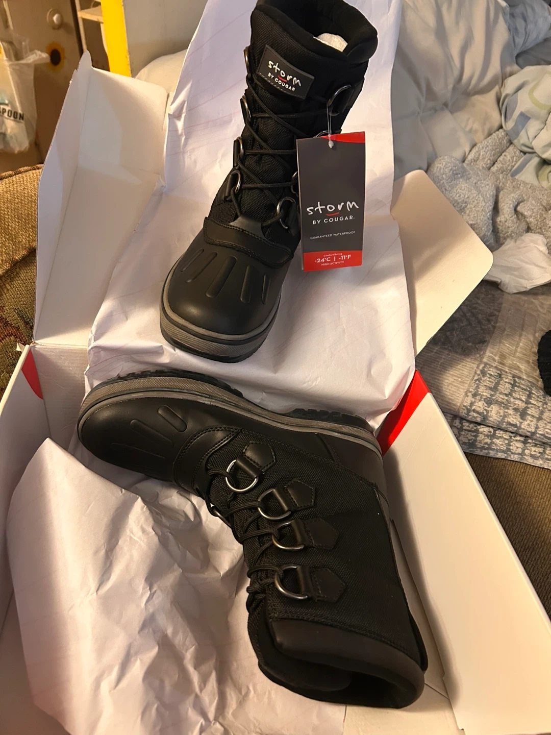 33Selling a brand new pair of Cougar Spokane winter boots in black, size 9! These are waterproof and ready to keep your feet warm and dry this winter. Comes with the original box