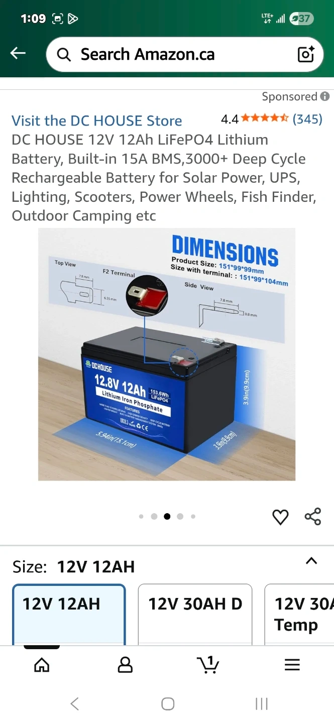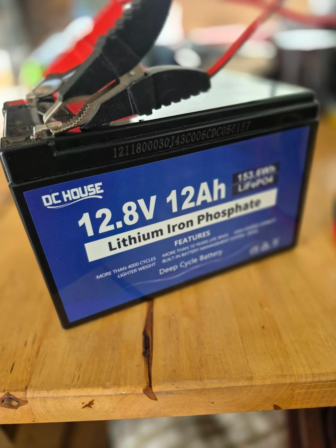 Selling a DC HOUSE 12.8V 12Ah Lithium Iron Phosphate Deep Cycle Battery. 3000x Rechargable This battery features a long lifespan and is lightweight. It's designed with a built-in battery management system (BMS).