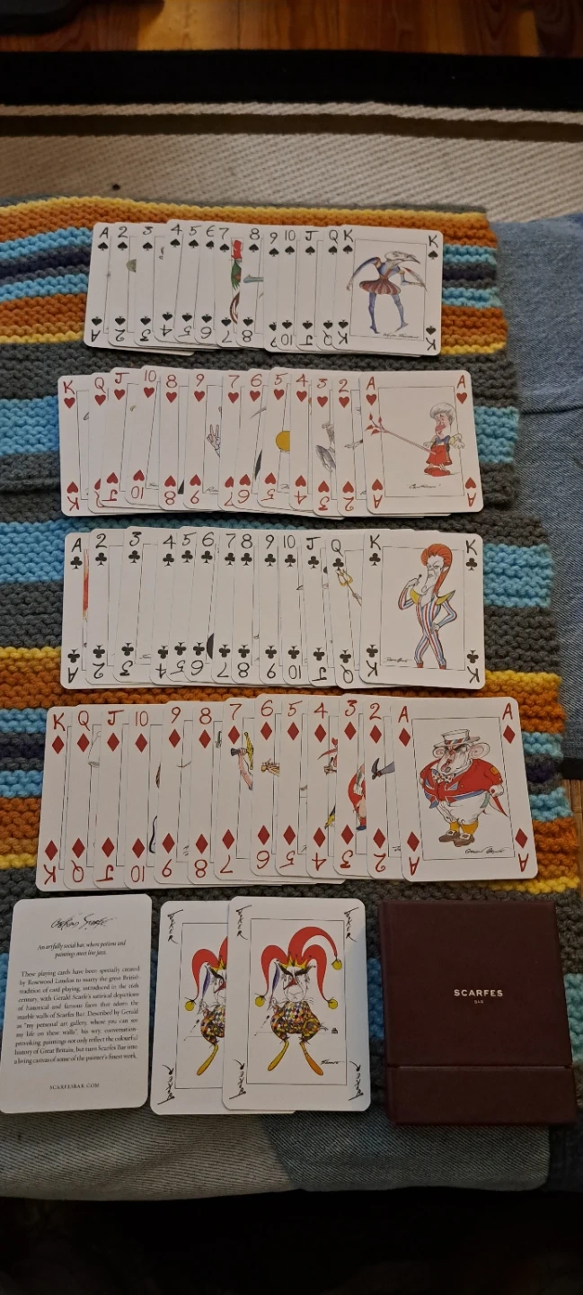 These playing cards were specially created by Rosewood London to marry the great British tradition of card playing, introduced in the 16th century, with Gerald Scarfe's satirical depictions of historical and famous faces that adorn the marble walls of Scarfe's Bar. Easy pickup weekdays in Yaletown or weekend in Mount Pleasant.