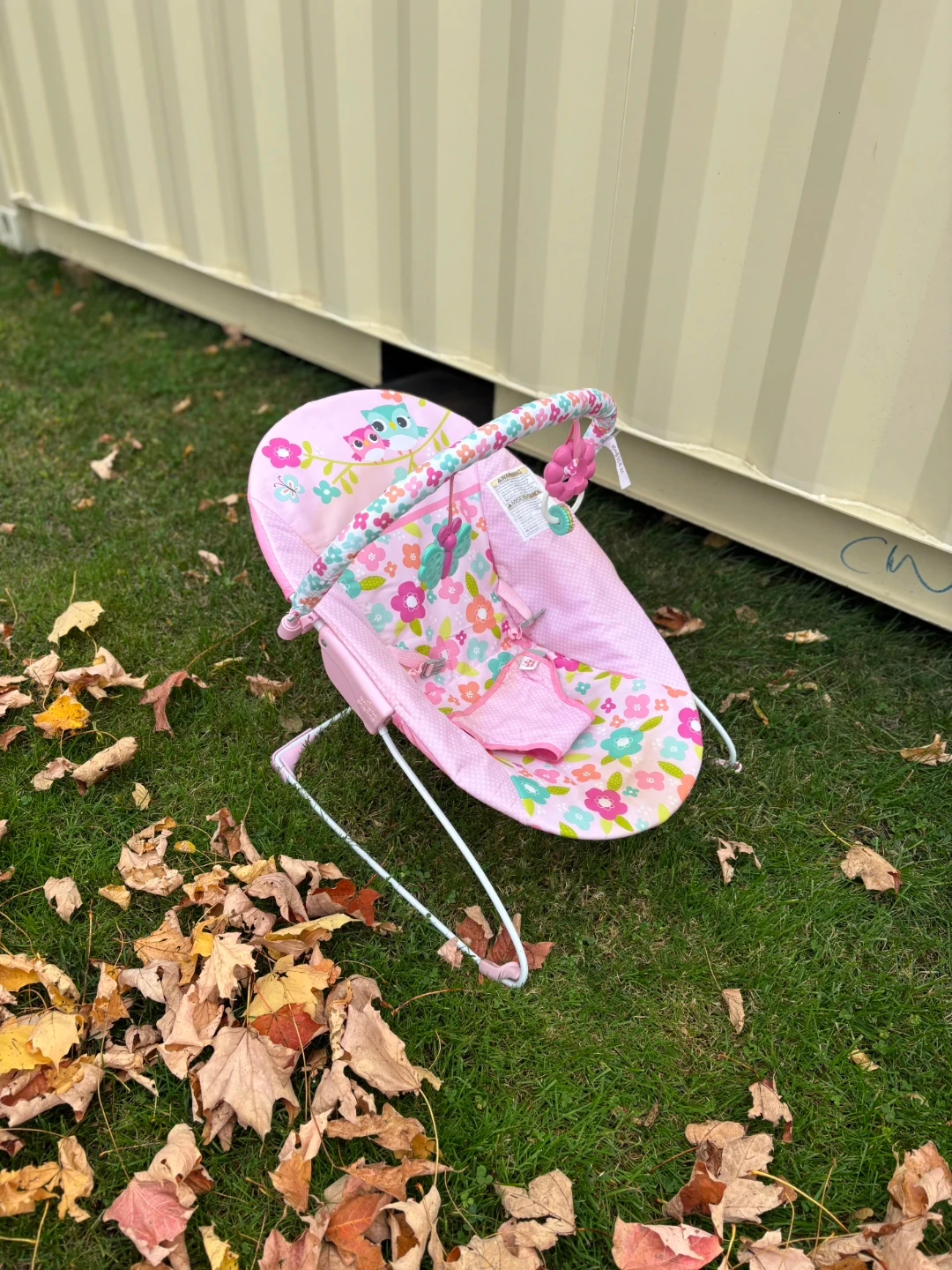 Selling a gently used Bright Starts Floral Friends Bouncer! It's pink with a cute floral and owl design. Perfect for keeping your little one entertained and comfy. Great for infants!