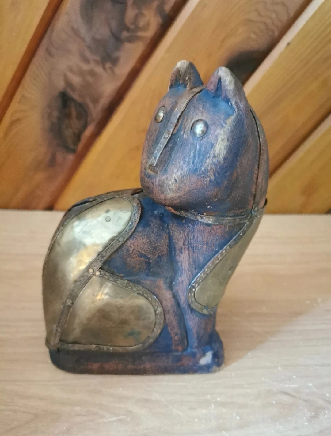 Gorgeous Vintage Hand Carved Wooden Cat Art Deco.