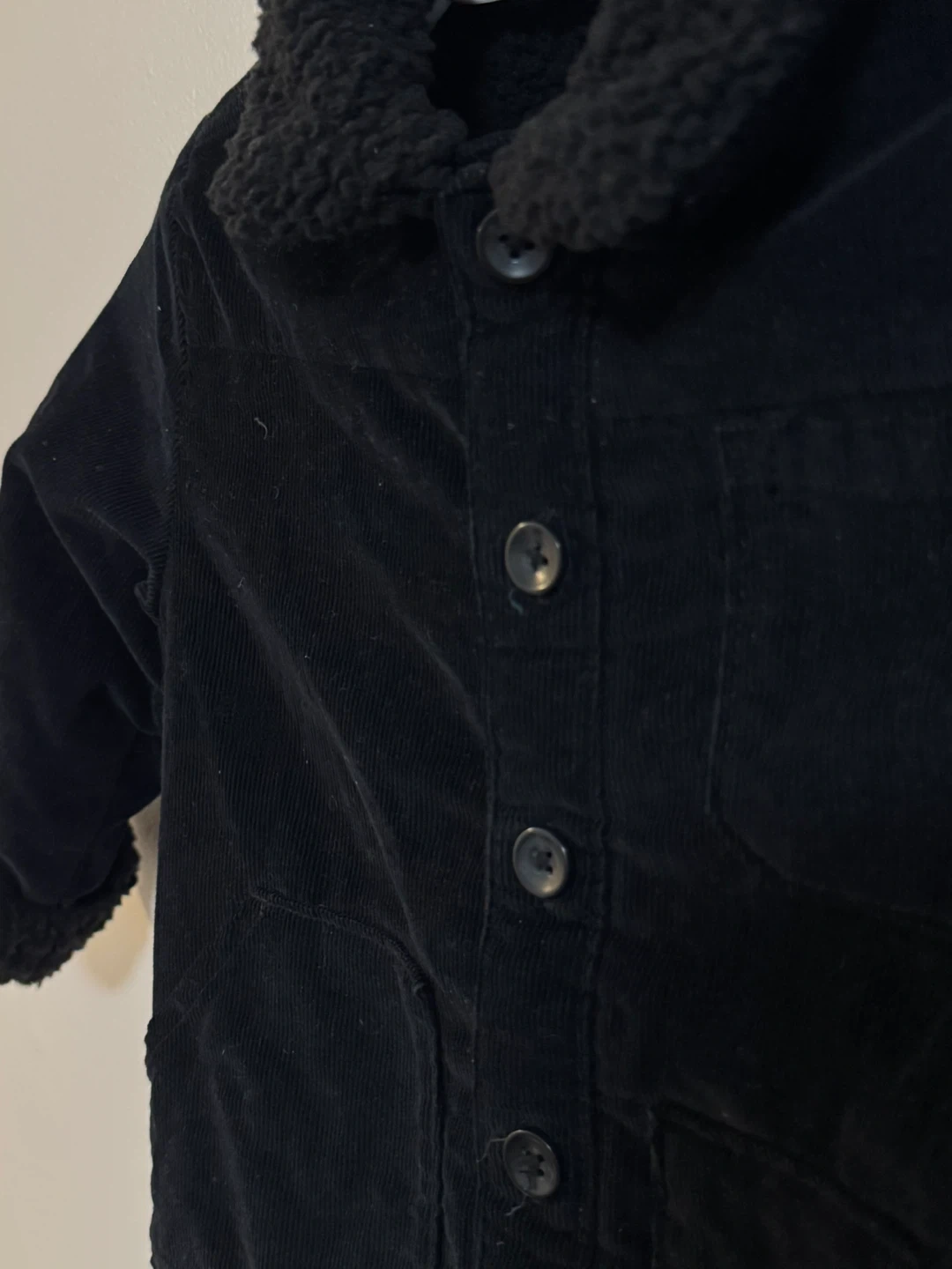 Here's a cute black corduroy jacket from Old Navy in size 4T. It has a soft, cozy sherpa-like lining around the collar and cuffs. Perfect for keeping your little one warm and stylish!