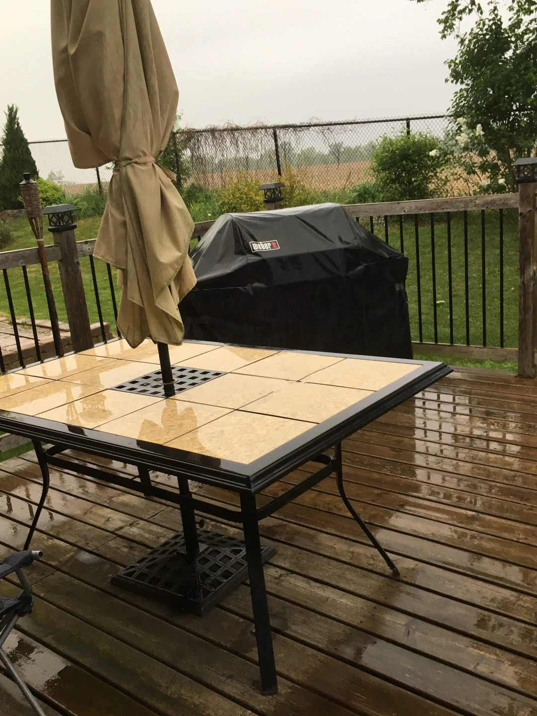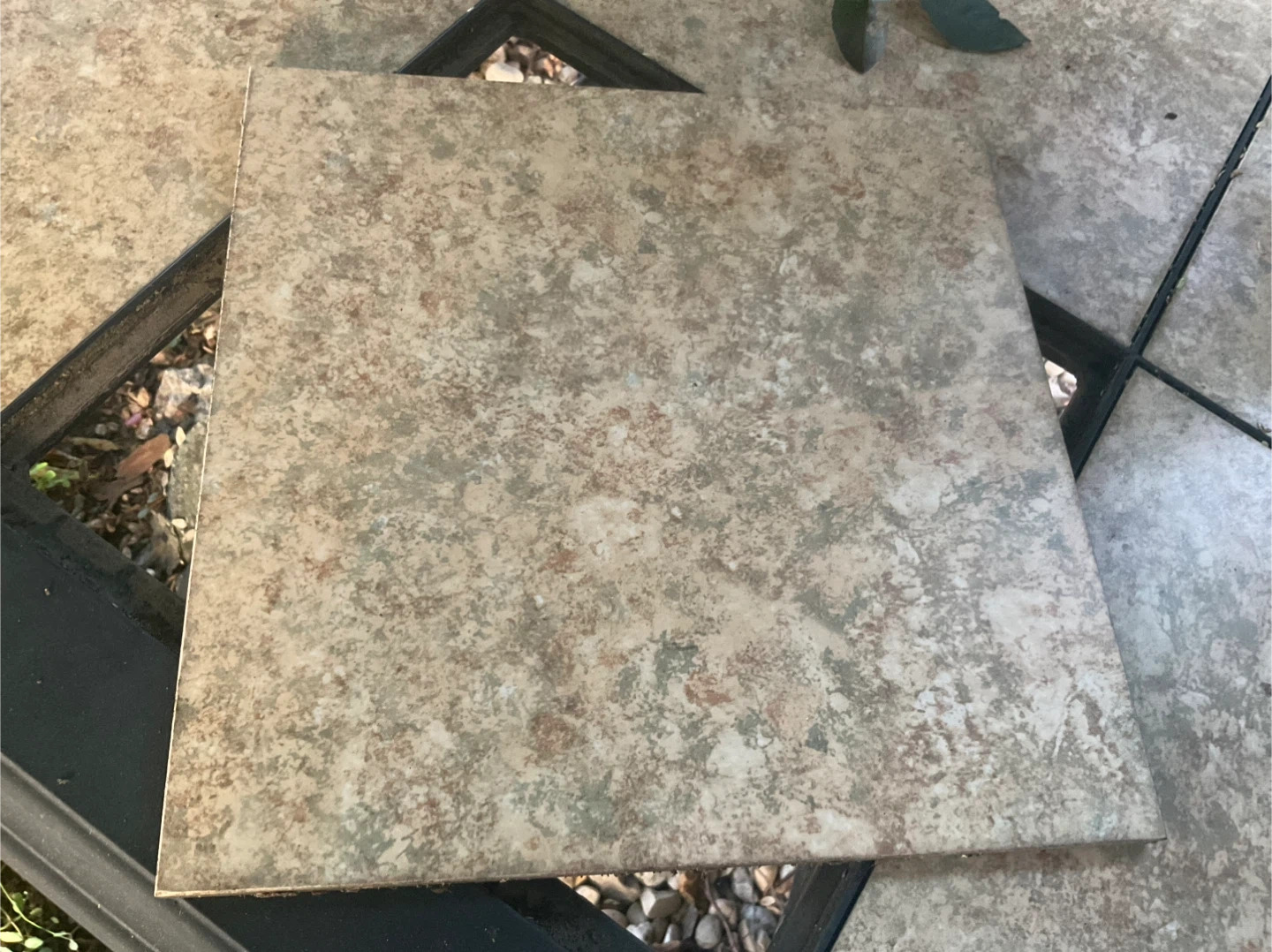 Selling a patio table featuring a tile top. It's perfect for outdoor dining or relaxing on your deck or patio. It appears to be in good condition and ready for a new home!