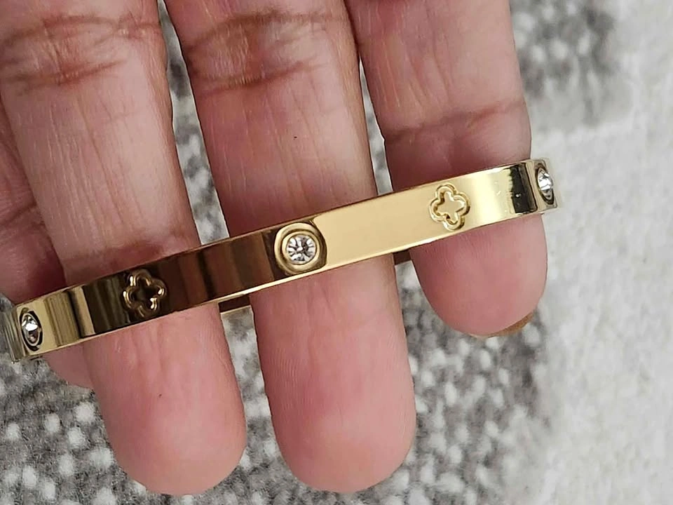Clover leaf bracelet – Titanium Steel, Diamond-Encrusted & Gold Bracelet