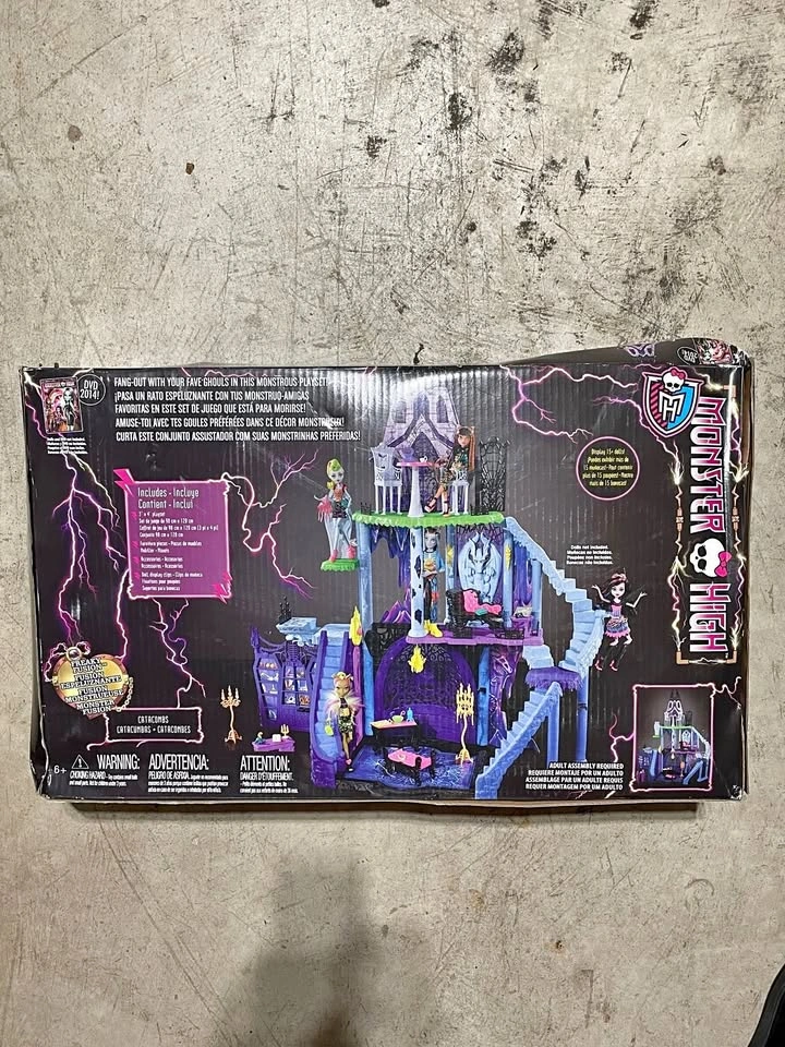 10Monster High Freaky Fusion Catacombs Playset Dollhouse - New Sealed - Rare Box has minor wear from storage. See pictures. - Smoke Free Home ~ BRAND NEW IN ITS ORIGINAL BOX ~ ~ EXCELLENT CONDITION ~ ~ RETIRED ~ RARE ~ NO LONGER SOLD IN STORES ~ HIGHLY COLLECTIBLE ~ ~ NEVER BEEN REMOVED FROM SEALED BOX ~ ~ AN AMAZING GIFT FOR ANY MONSTER HIGH FAN ~ Please check out the photos for details of exact item including dolls and condition of box.