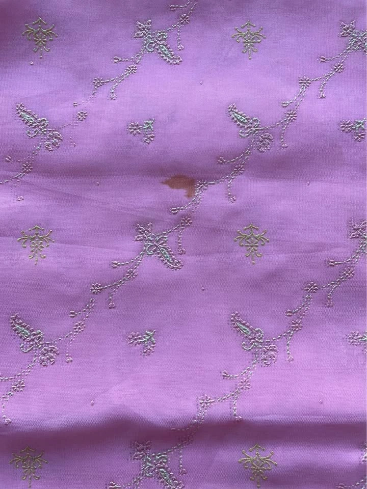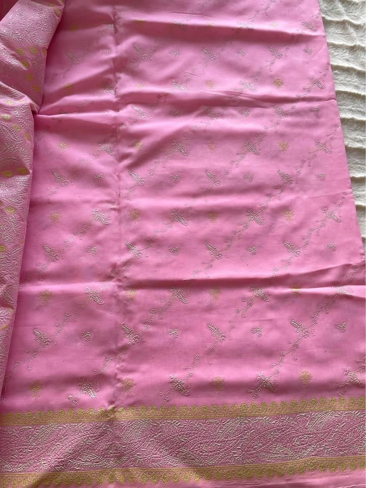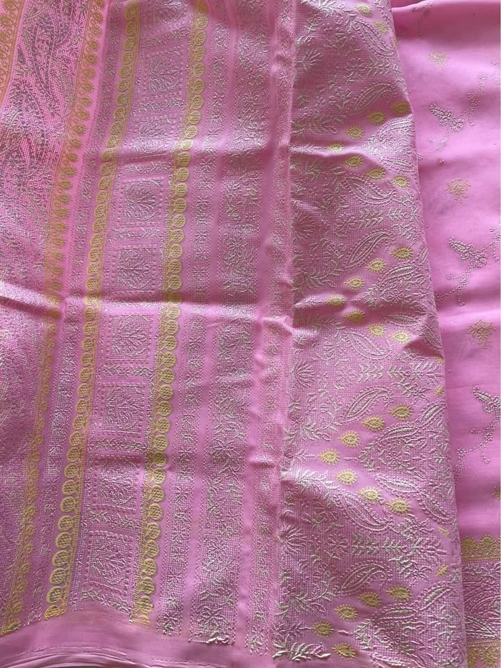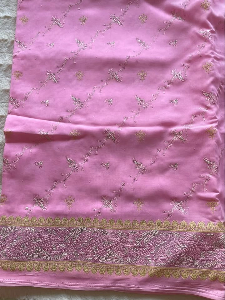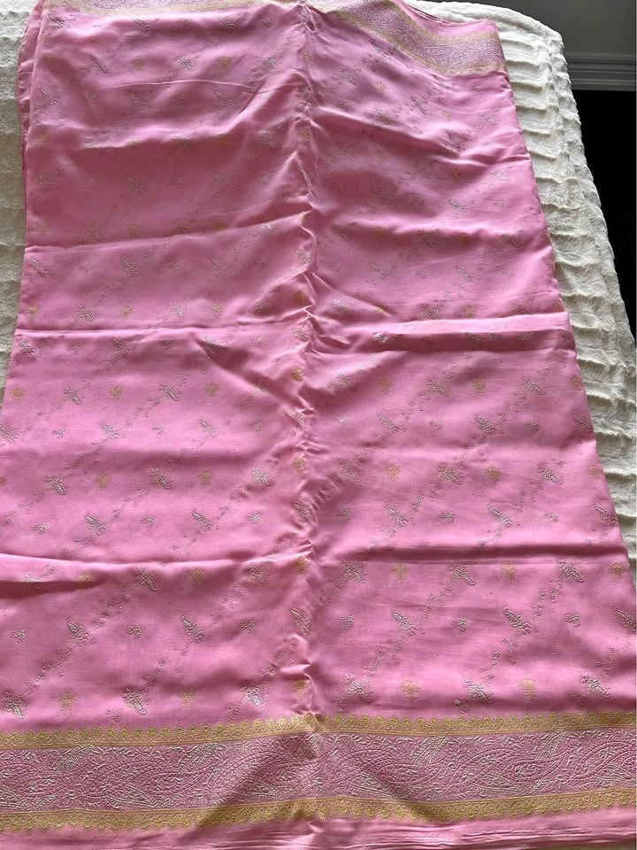 Baby pink rubber print saree. Fall pico dine. Worn once, no Blouse, only 1 small mark as shown in the picture