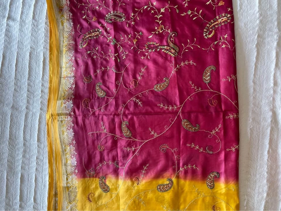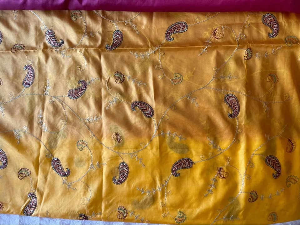 Maroon silk one is 2 toned. Maroon and yellow embroidery work all over