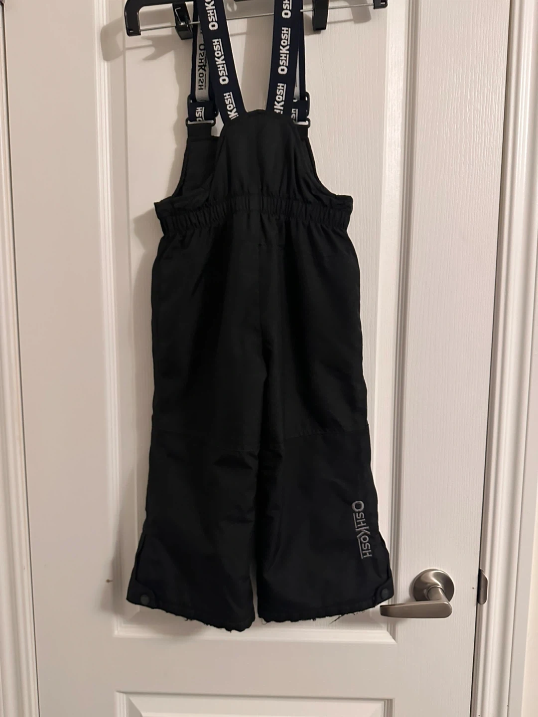 Selling Boys OshKosh B'Gosh snow pants in size 3T. They're black and in great condition, ready for some winter fun! These are made with a shell of polyester and a coating of urethane, built to last.
