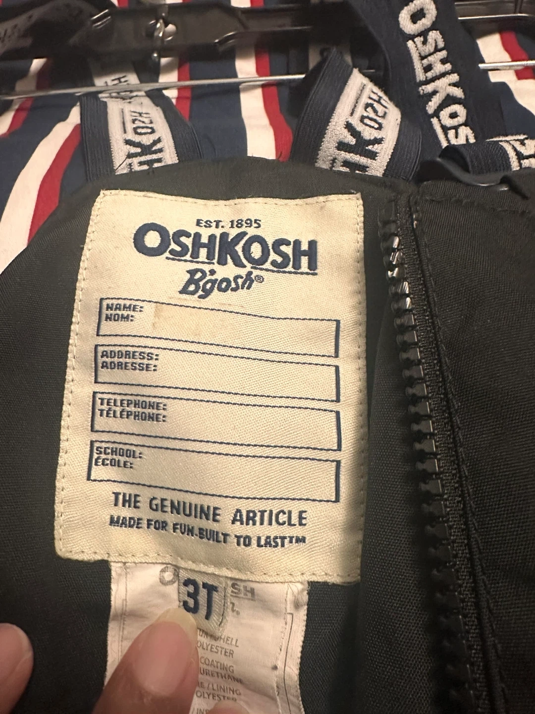Selling Boys OshKosh B'Gosh snow pants in size 3T. They're black and in great condition, ready for some winter fun! These are made with a shell of polyester and a coating of urethane, built to last.