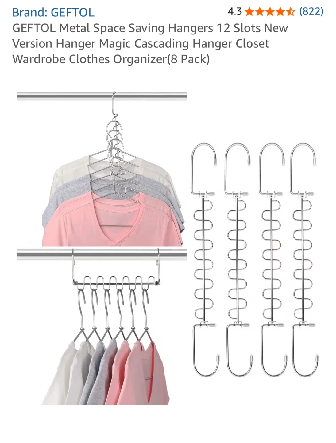 Declutter your closet with these GEFTOL metal space-saving hangers! They're designed to help you maximize your wardrobe space by allowing you to hang multiple garments vertically or horizontally. Get organized and make the most of your closet space with this handy 4pack of hangers