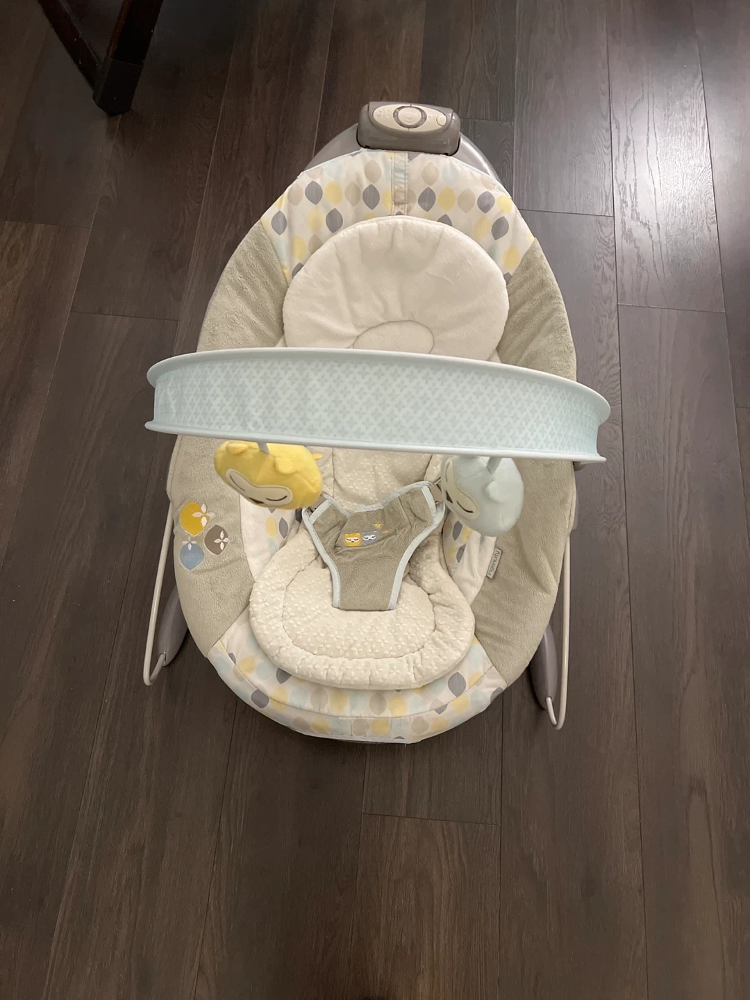 Selling an Ingenuity automatic baby bouncer! It's in great condition and ready for a new home. It has a neutral colour scheme with cute hanging toys. Perfect for keeping your little one entertained and comfortable