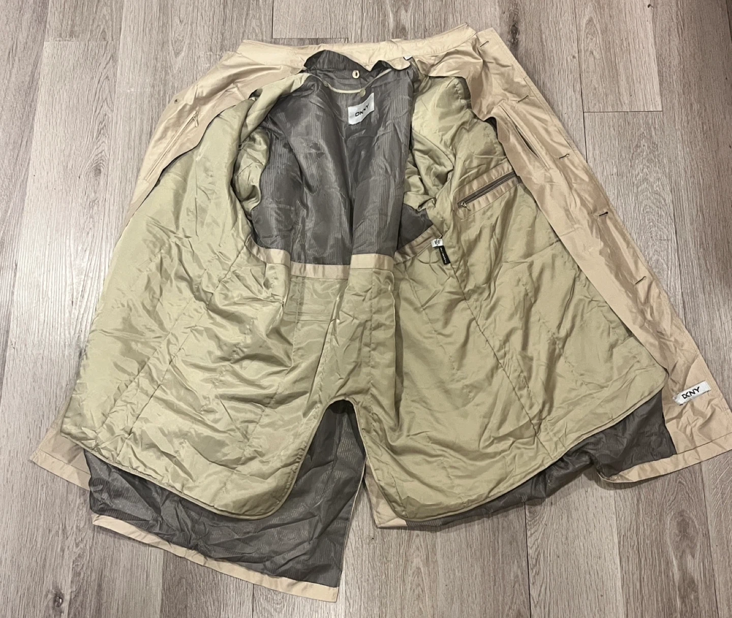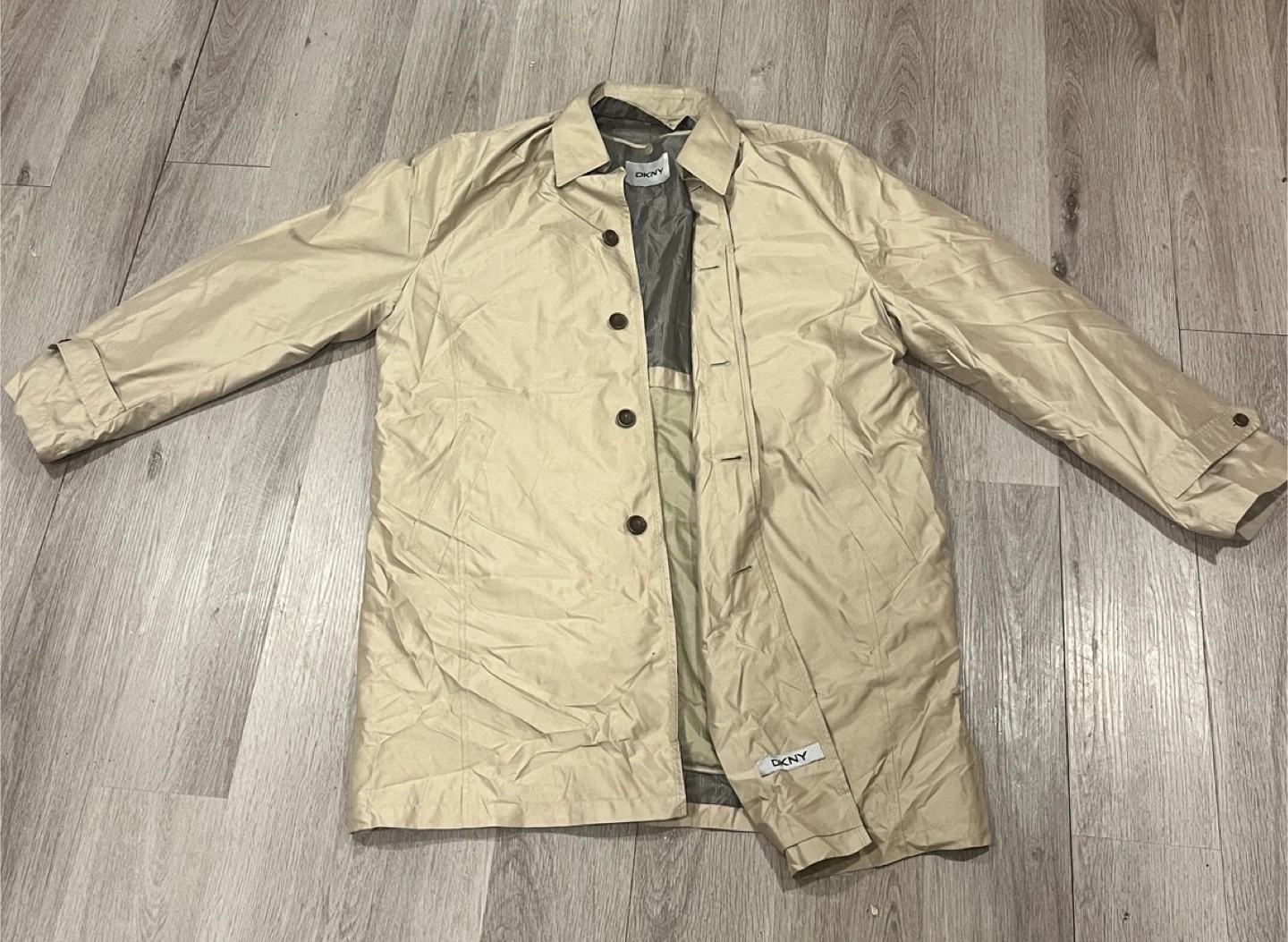 Selling a DKNY trench coat in a neutral beige color! 40$ not 5$ It's in great condition and ready for a new home, only worn twice. Perfect for layering and adding a touch of style to any outfit. The material feels durable and comfortable, making it a versatile piece for various weather conditions