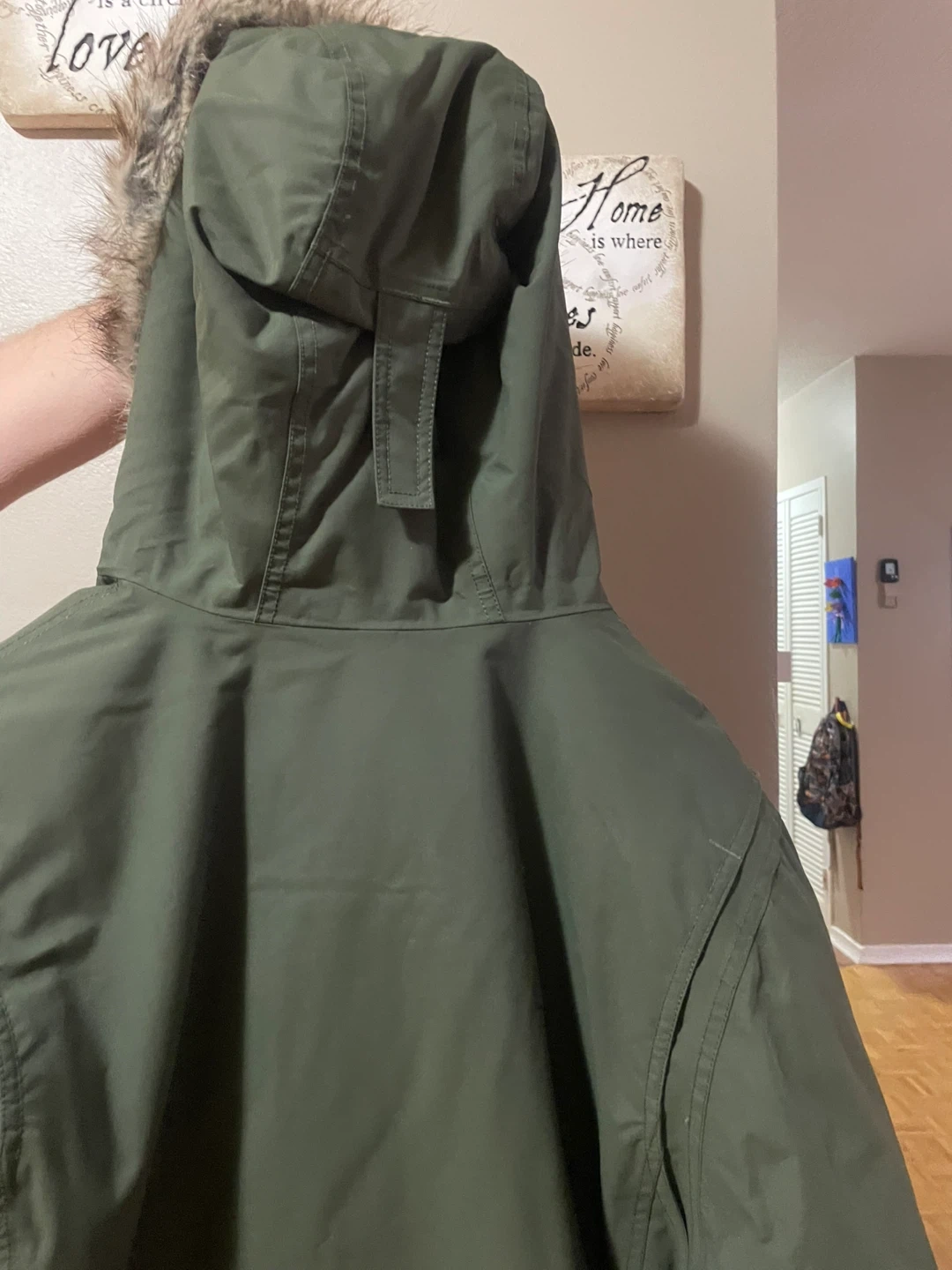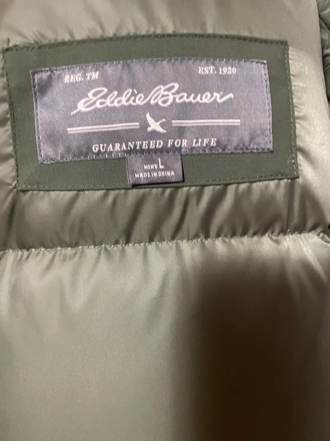 Selling an Eddie Bauer men's parka in size large! It's a stylish and functional jacket, perfect for braving the Canadian weather. This parka features a fur-trimmed hood to keep you cozy and multiple pockets for all your essentials. The colour is a versatile olive green. Guaranteed for life!