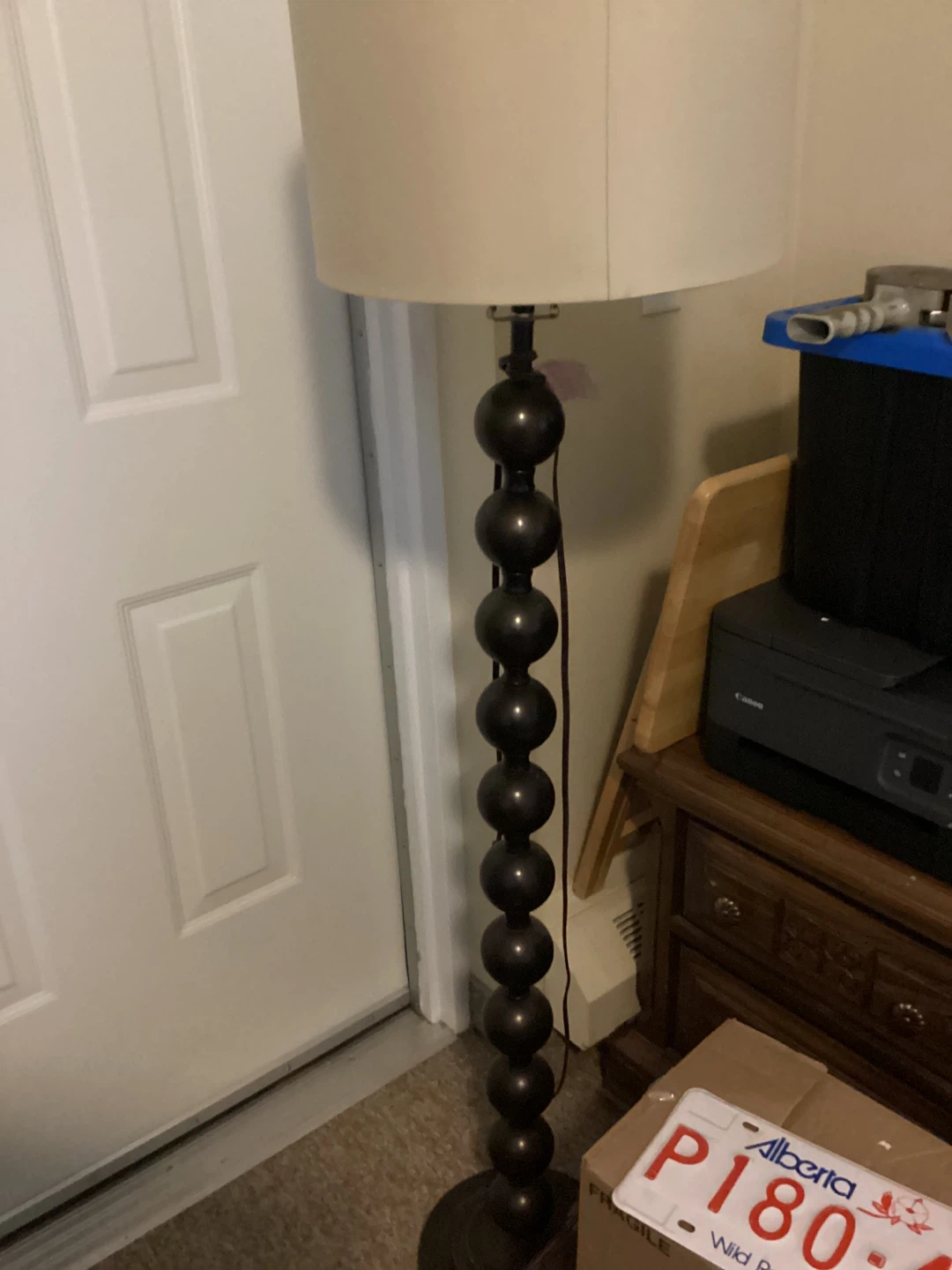 Reduced! This is a stylish brown bobble floor lamp that would look great in any room! It's in good condition and ready for a new home. May need a new lamp shade .