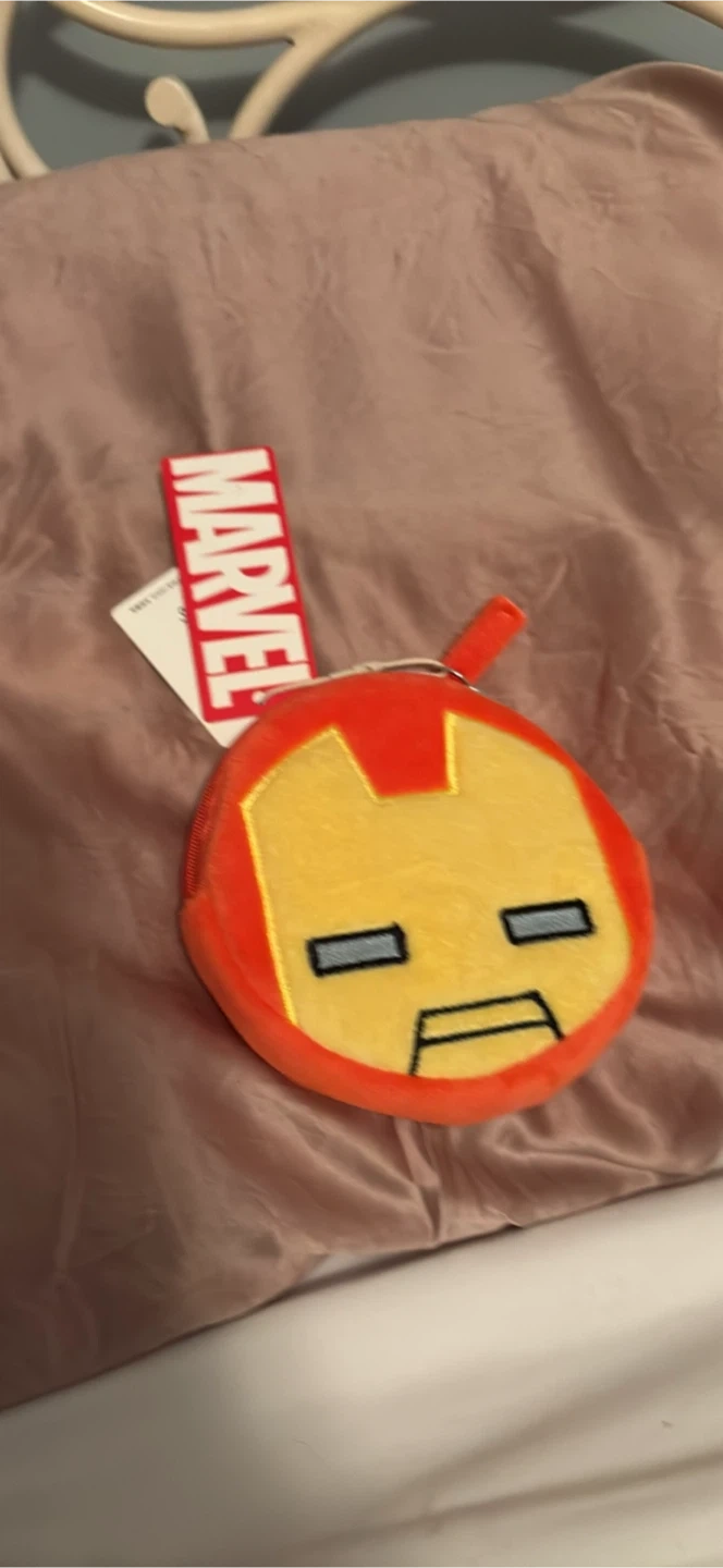 This is a super cute Iron Man coin purse! It's perfect for keeping your change or small treasures safe. The bright colours and fun design make it a great accessory for any Marvel fan