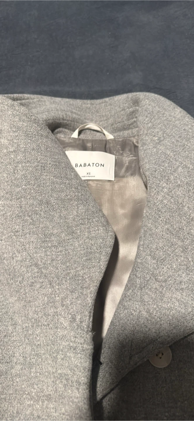 Selling a gently used Aritzia Babaton coat in size XS! It's made from virgin wool and features a stylish design. Perfect for staying warm and fashionable during the colder months