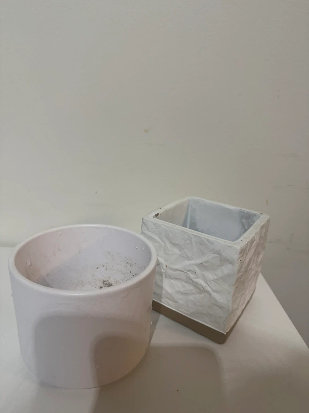I have two white ceramic plant pots for sale. One is round and the other is square. They are both in great condition and ready for your favourite plants!