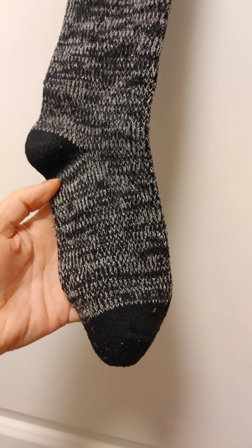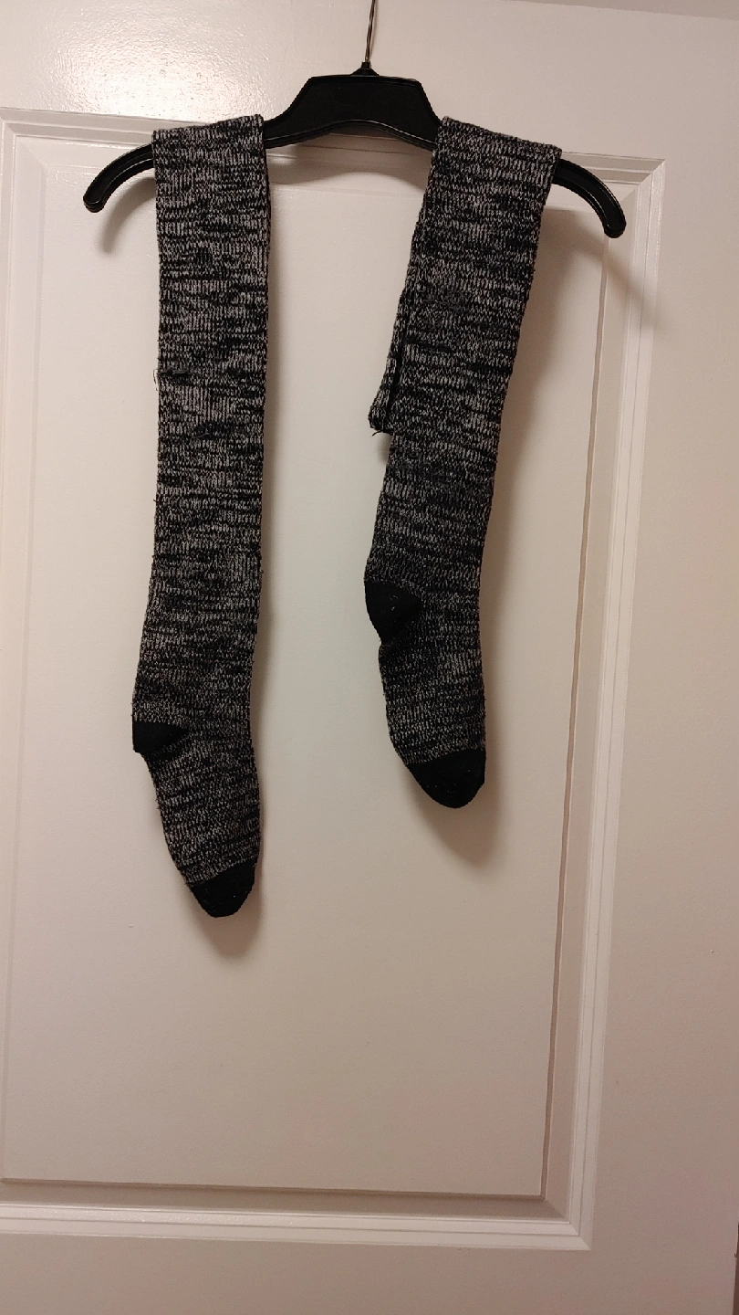 63Selling a pair of socks. They're grey and black in colour. They are in used condition