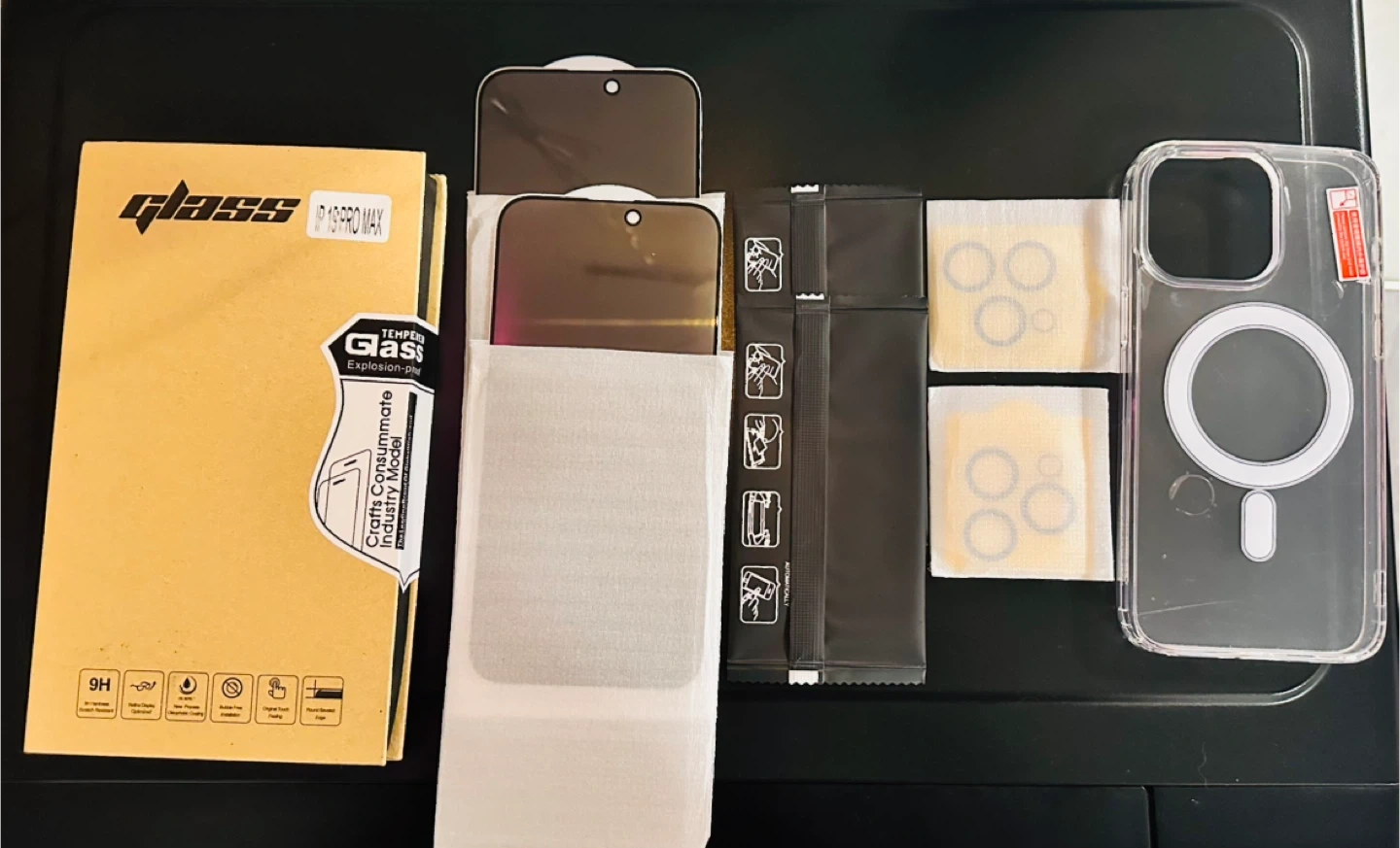 Selling a new iphone 15 Pro Max protection bundle. Includes 2 privacy glass screen protectors, 2 camera lens and a clear magsafe phone case for your device. Keep your phone safe from scratches and bumps!