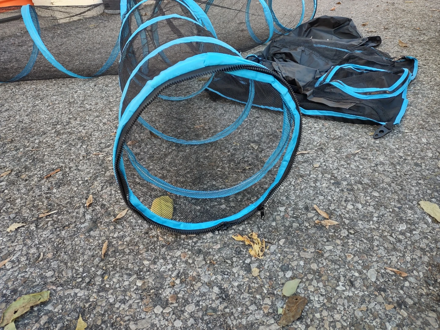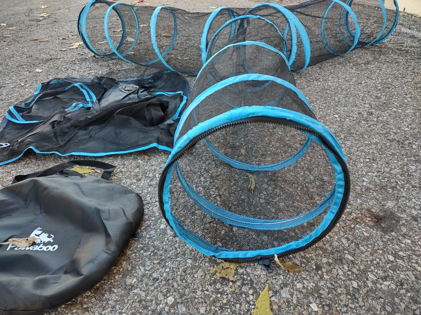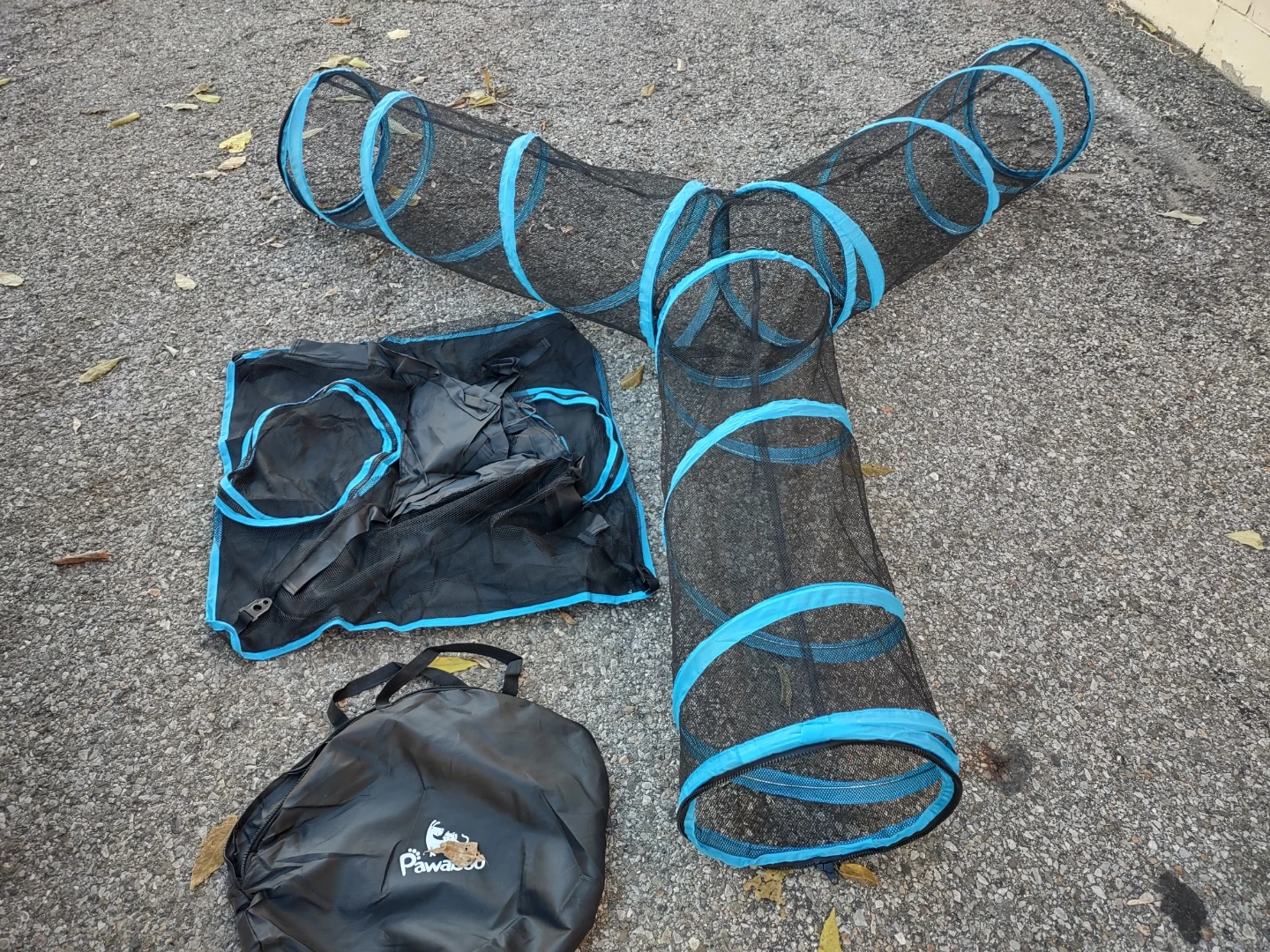 0Check out this Pawaboo cat tunnel! It's black with blue trim and comes with a carrying bag, making it easy to store and transport. Your kitty will love playing in this fun tunnel! I have 16 pieces free delivery option.