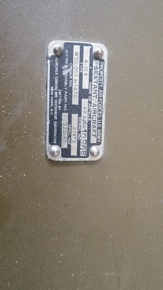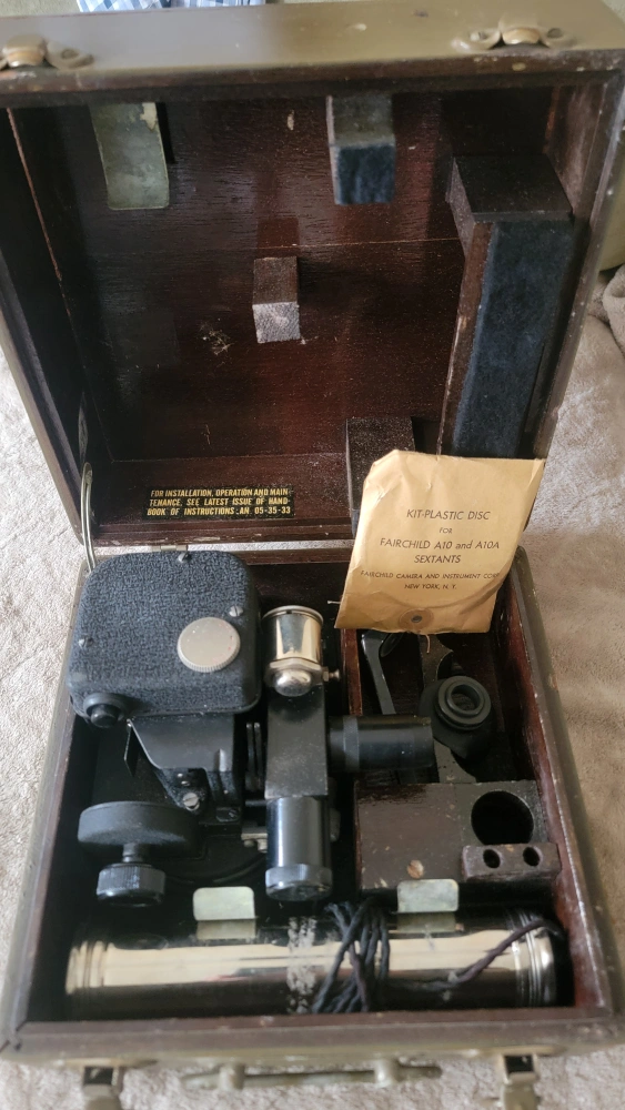 Selling a Fairchild A-10A sextant aircraft. It comes in its original box with included components. The box has some wear and tear, but the sextant itself appears to be in good condition. It's a piece of aviation history!