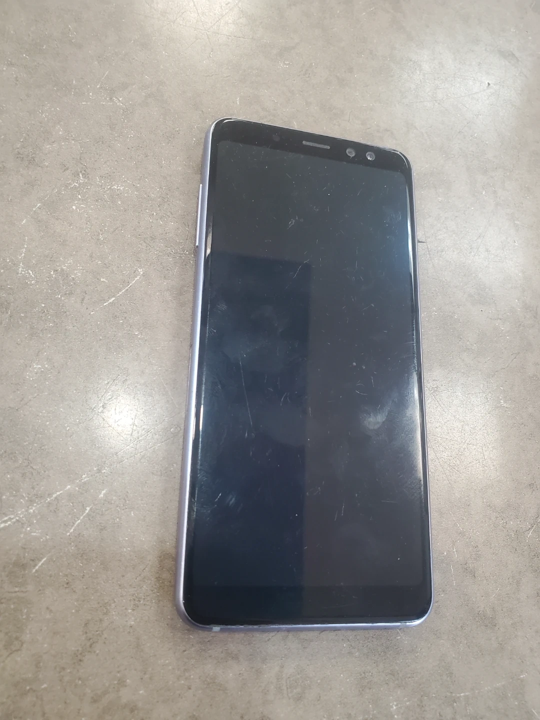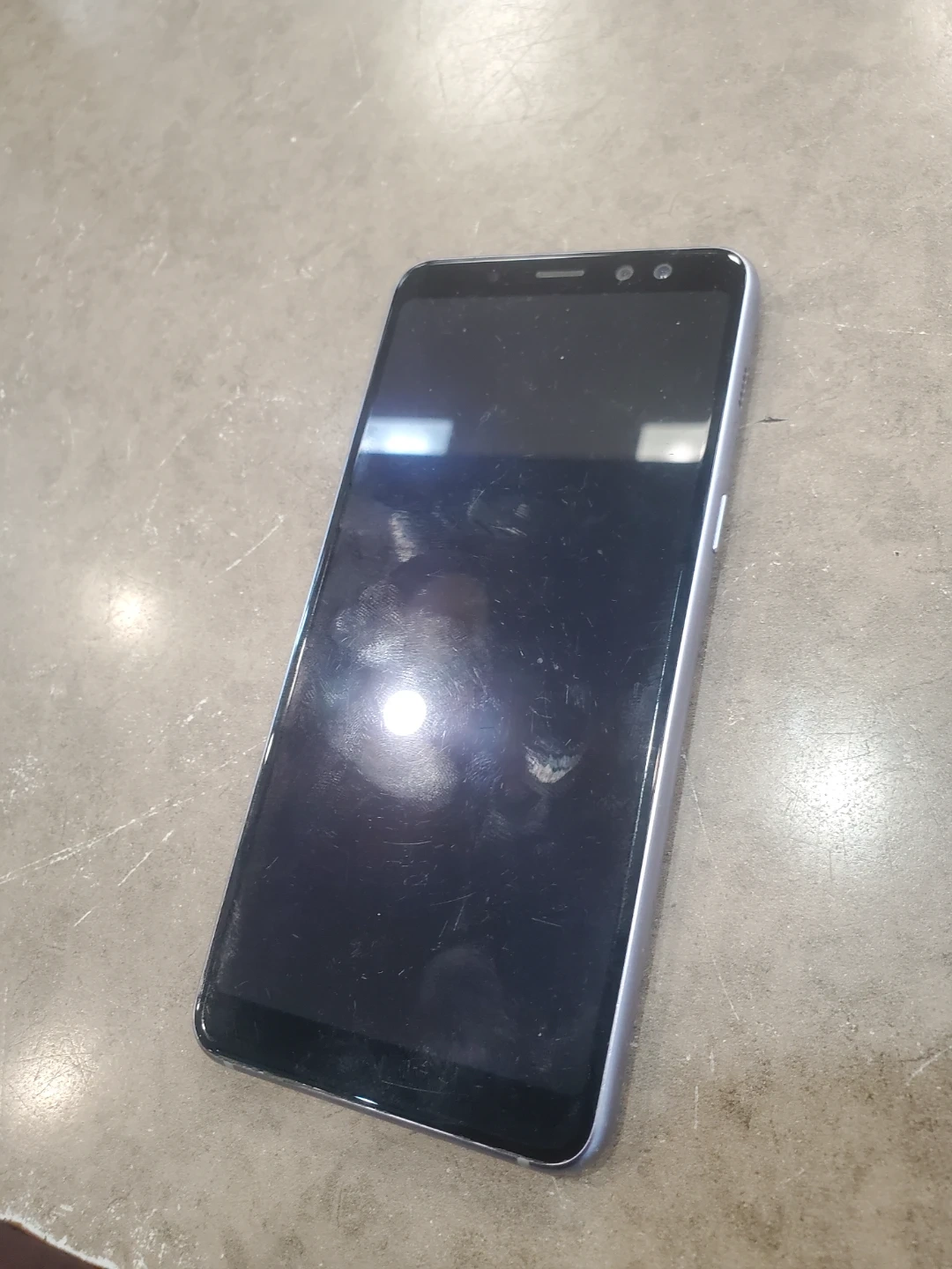 This is a Samsung Galaxy A8 smartphone. It's a bit scratched on the screen. This phone is unlocked and ready for a new user.