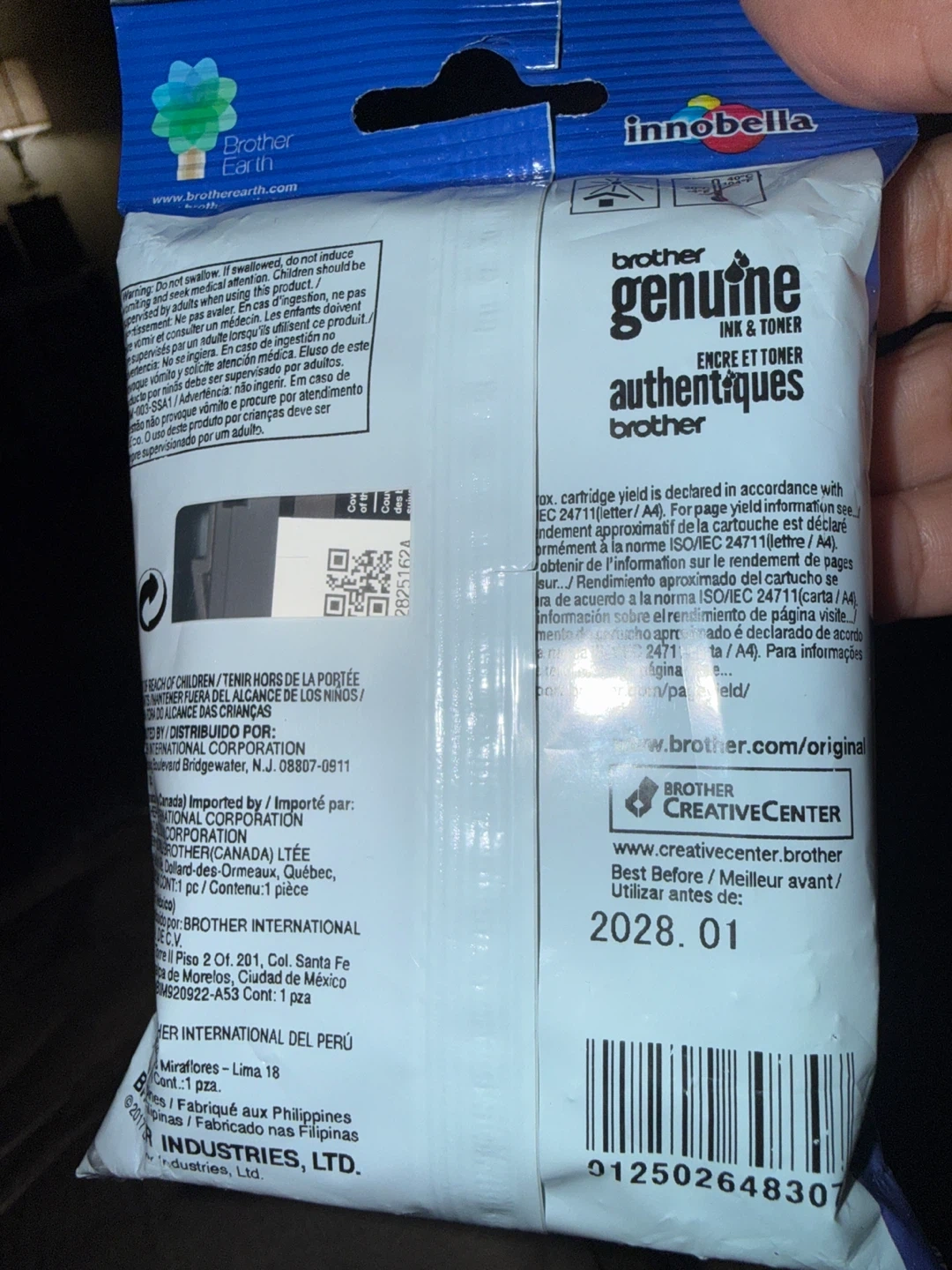 This is a Brother LC3013BK XL black ink cartridge. It's an XL size with an estimated page yield of 400 pages. Compatible with MFC-J491DW, MFC-J497DW, MFC-J690DW, and MFC-J895DW printers. Expiration date is 2028.01.