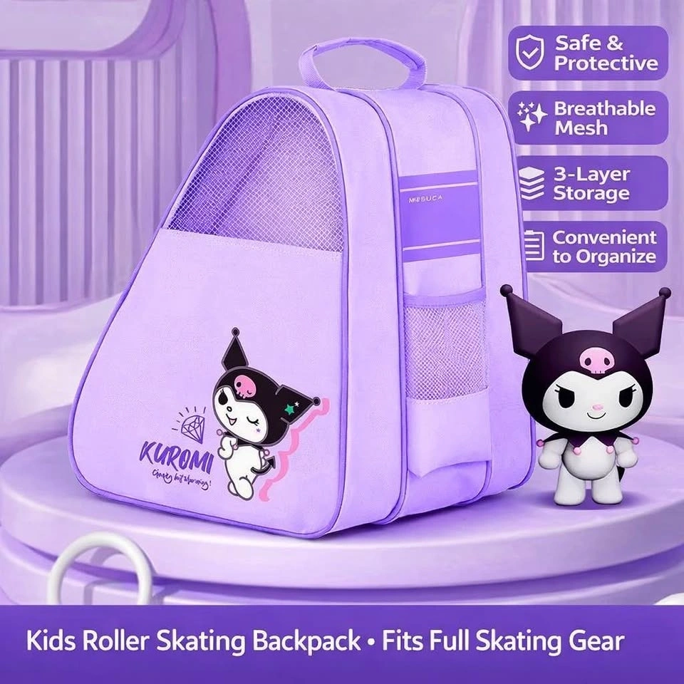 This adorable backpack is specially designed for kids who love roller skating! With a breathable mesh design and smart compartment layout, it safely stores roller skates and accessories while staying lightweight and comfortable to carry.
