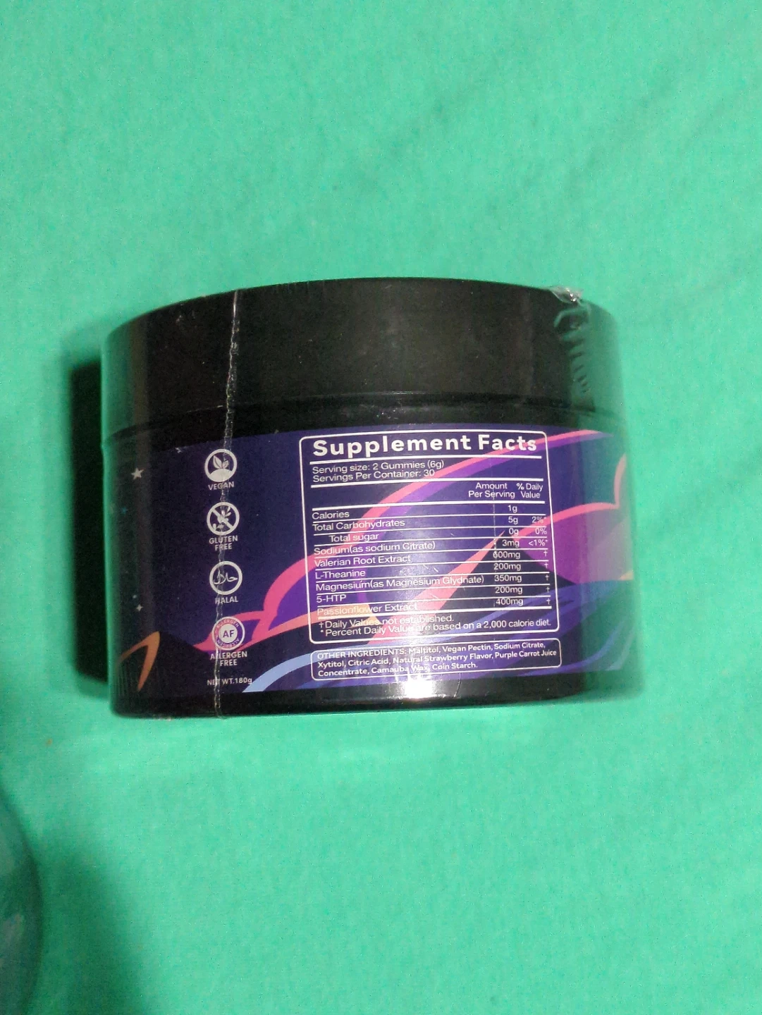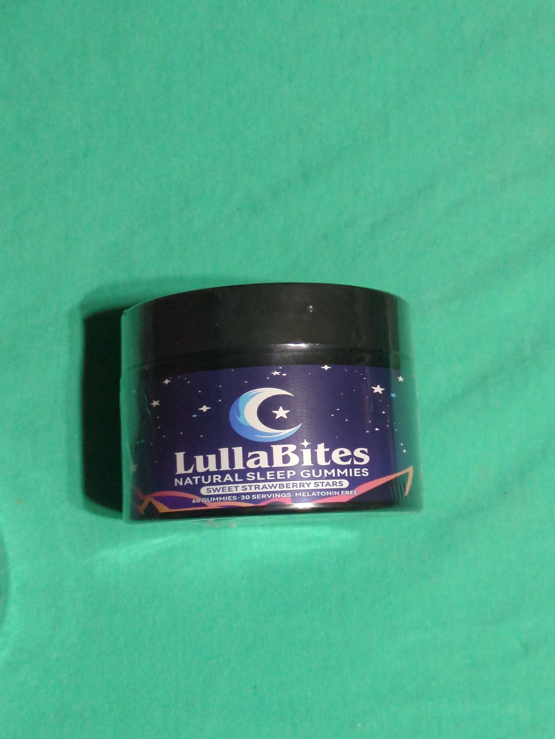 Natural sleep gummies in Sweet Strawberry Stars flavour. This container has 60 gummies and offers 30 servings. It's melatonin-free and expires in October 2027.