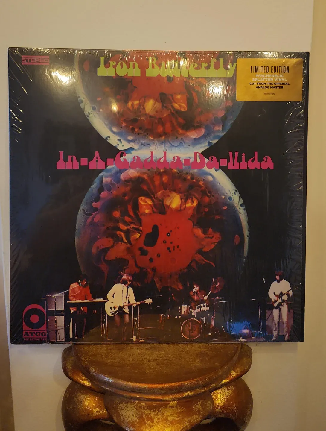 This is a limited edition vinyl of Iron Butterfly's In-A-Gadda-Da-Vida. It's a psychedelic splatter vinyl cut from the original analog master. This record is a classic from the ATCO label. It features the iconic title track! NO SKIPS. PLAYED ONCE!