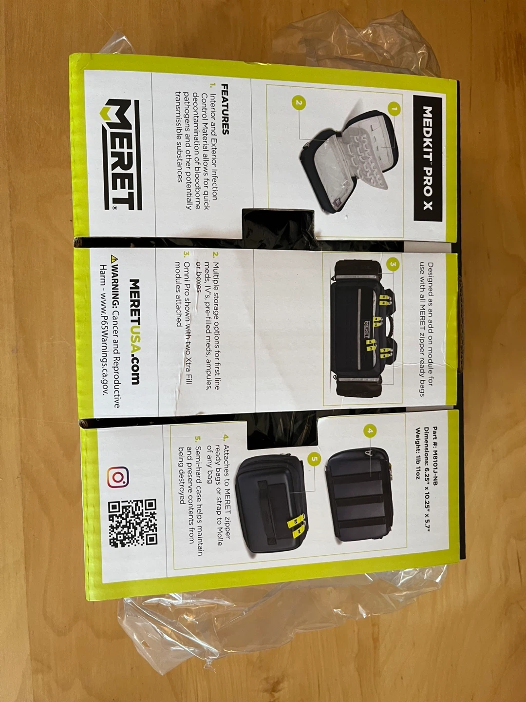 Selling a MERET Medkit Pro X medical bag. This bag is designed as an add-on module for use with all MERET zipper-ready bags. It features interior and exterior infection control material, allowing for quick decontaminating and potentially transmissible substances. It also has multiple storage options for first-line medical supplies. The dimensions are 9.25" x 12.5" x 5.7" and the weight is 1lb 7oz