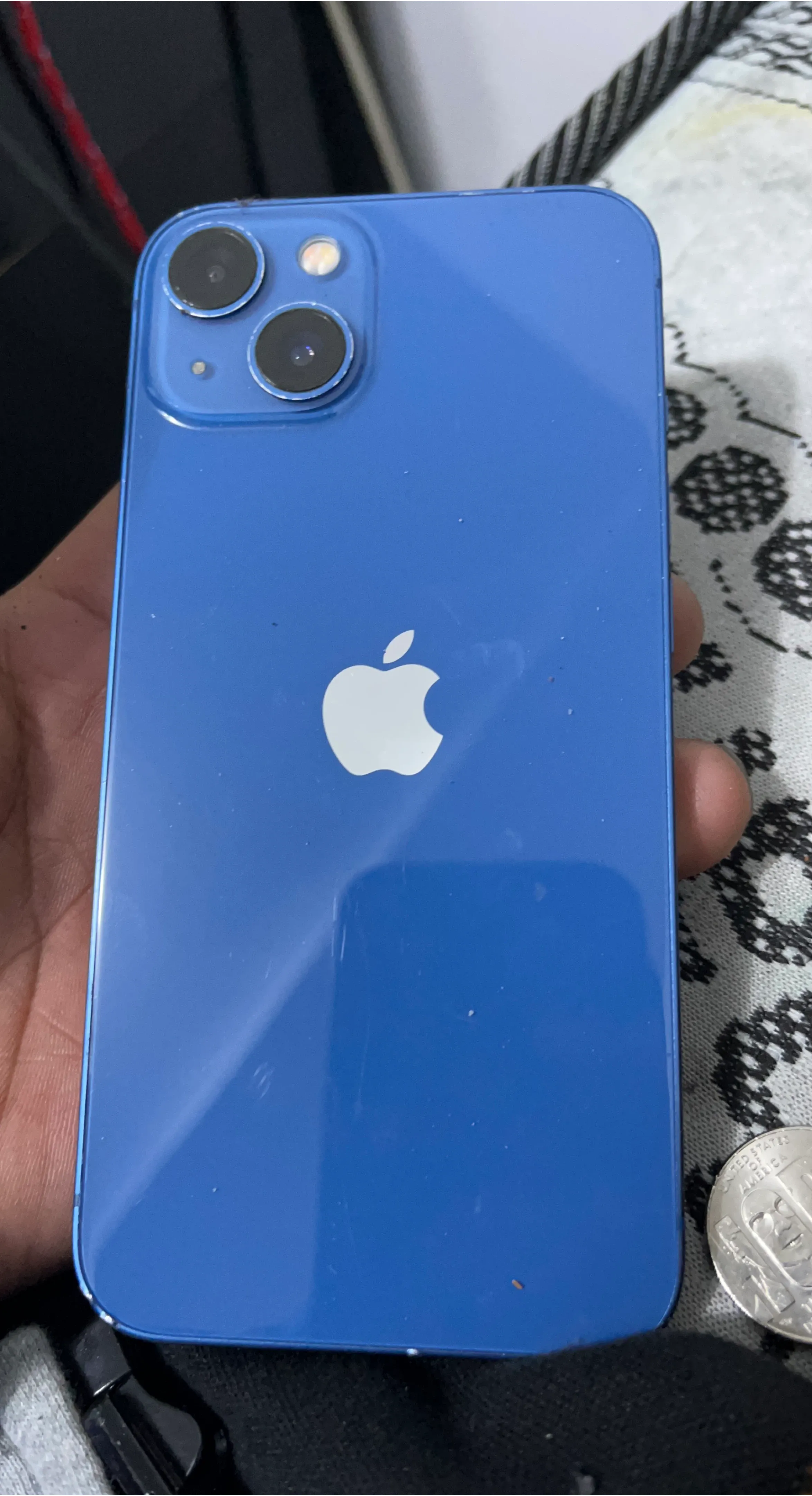 Apple iPhone 13 in a vibrant blue color. It features a dual-camera system and a bright display. This phone is unlocked and ready for use!