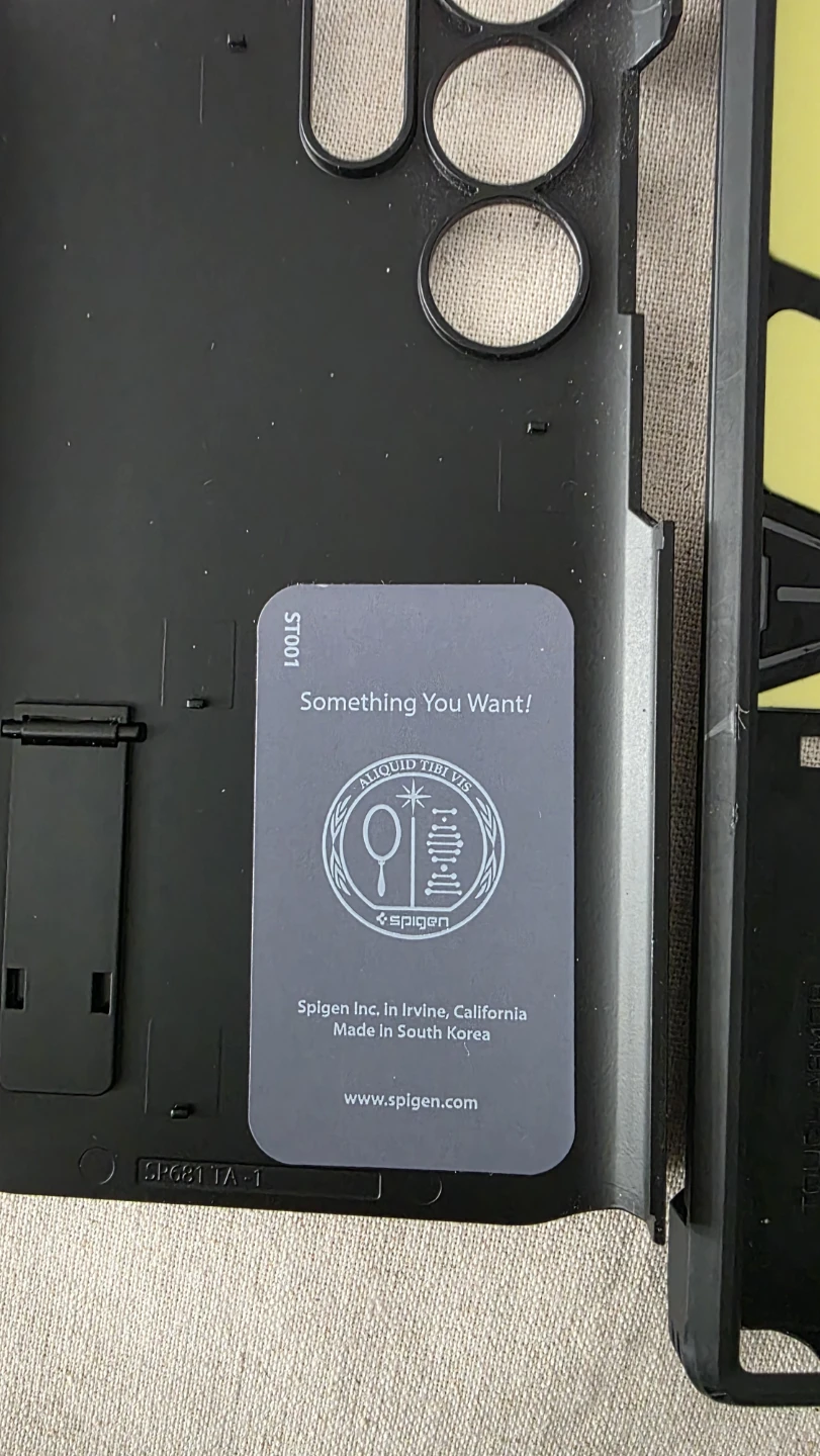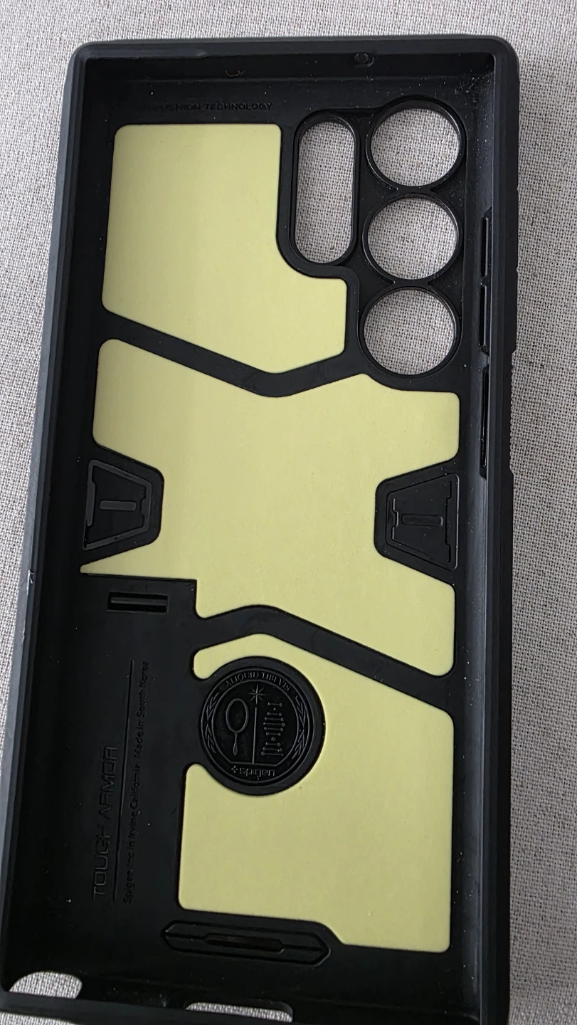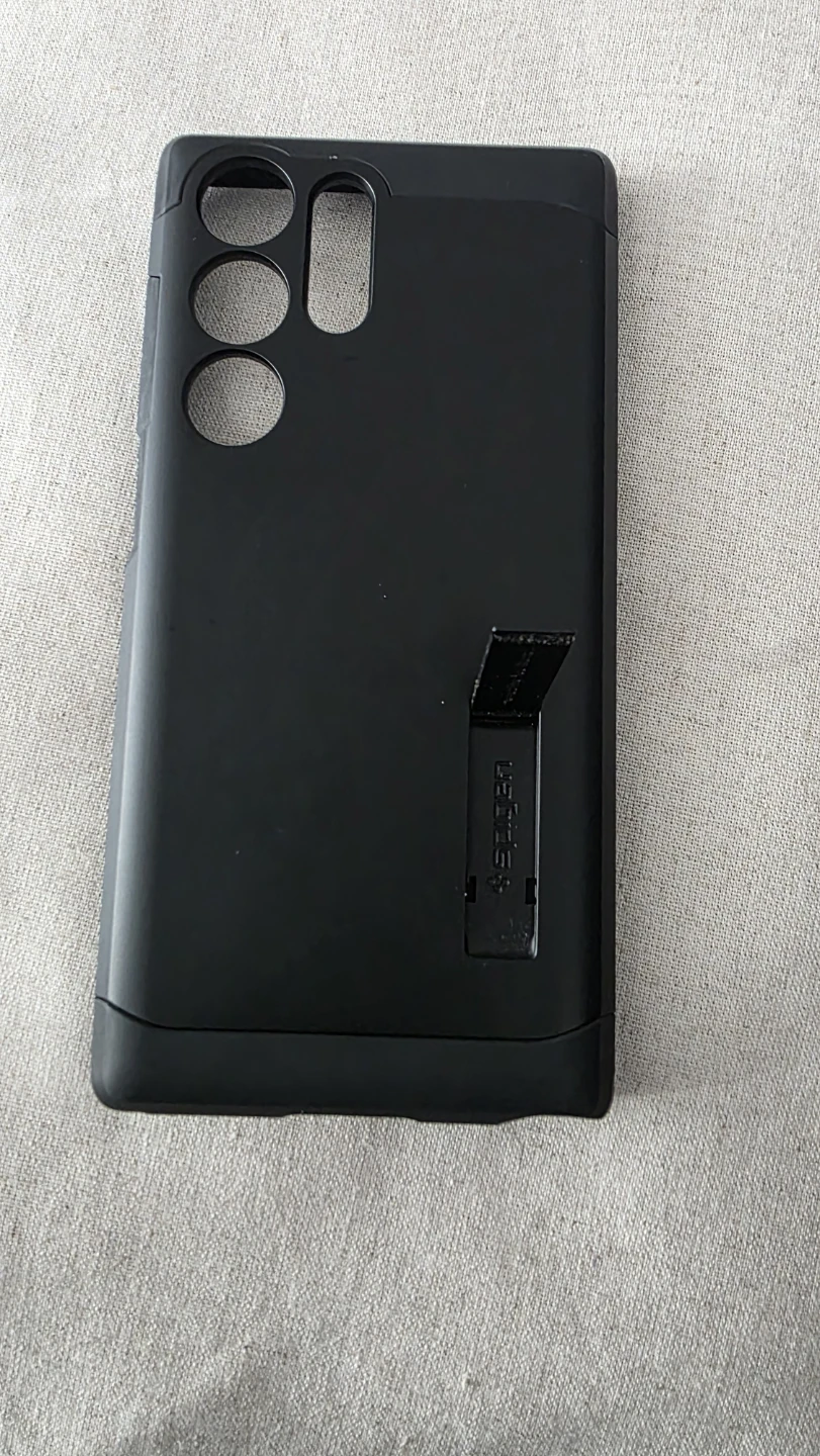 This is a Spigen Tough Armor case. It includes a built-in kickstand for convenient viewing. The case is made from durable materials to protect your phone.