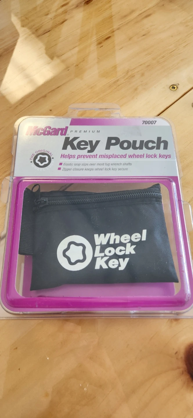 McGard Premium Key Pouch helps prevent misplaced wheel lock keys. It's designed with elastic loops that slip over most lug wrench shafts. The zipper closure keeps the wheel lock key secure.