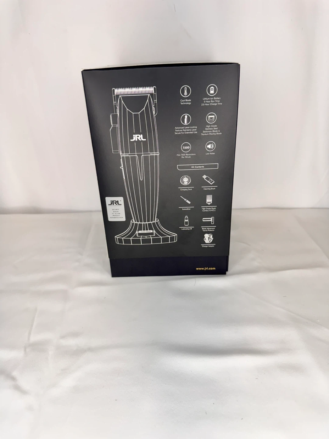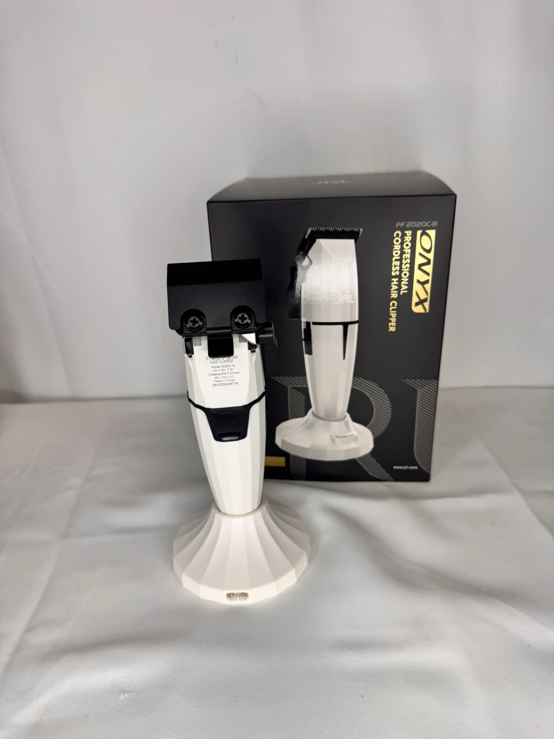 This JRL ONYX professional cordless hair clipper features advanced ceramic blade technology. It has a powerful 2-speed motor and a 2.5-hour charge time with its lithium-ion battery. This clipper comes with a charging stand and cleaning brush.