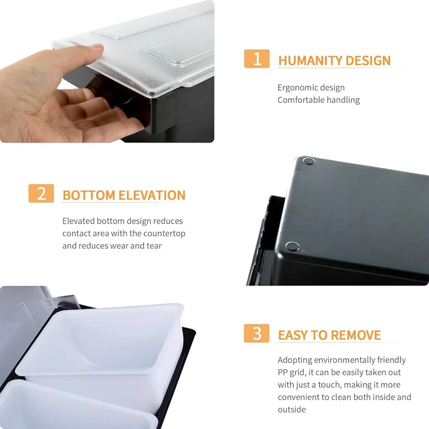 Durable and easy to clean: Food and Condiment Organizer made of durable plastic. The lid just needs to be removed for easy cleaning; it is dishwasher safe and the lid snaps back into place easily for repeated use.